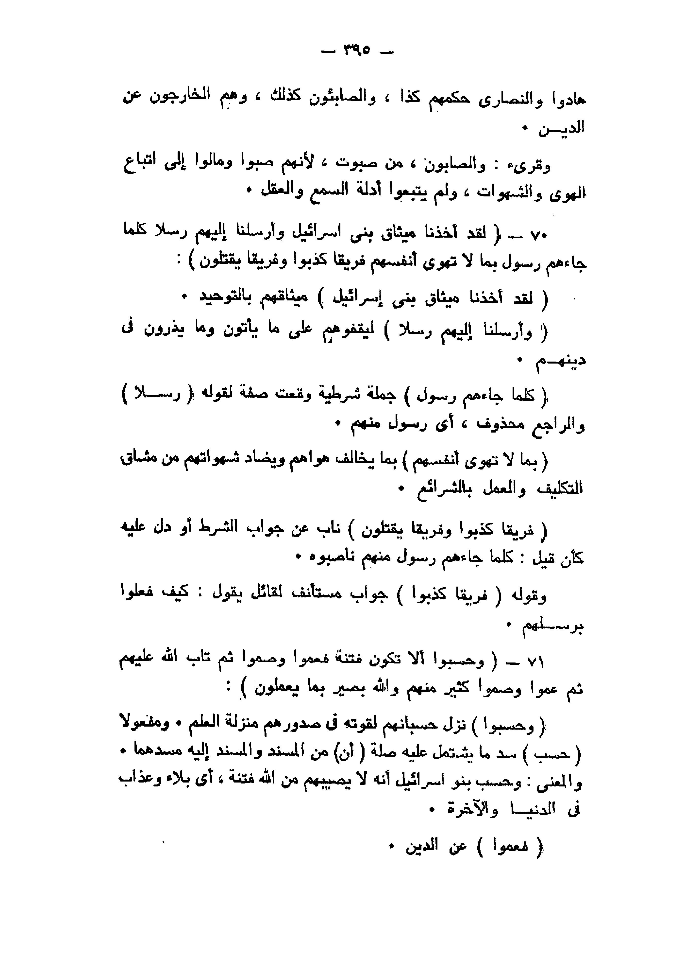 لَقَدْ أَخَذْنا مِيثاقَ بَنِي إِسْرائِيلَ وَأَرْسَلْنا إِلَيْهِمْ رُسُلاً كُلَّما جاءَهُمْ رَسُولٌ بِما لا تَهْوى أَنْفُسُهُمْ فَرِيقاً كَذَّبُوا وَفَرِيقاً يَقْتُلُونَ (70) وَحَسِبُوا أَلاَّ تَكُونَ فِتْنَةٌ فَعَمُوا وَصَمُّوا ثُمَّ تابَ اللَّهُ عَلَيْهِمْ ثُمَّ عَمُوا وَصَمُّوا كَثِيرٌ مِنْهُمْ وَاللَّهُ بَصِيرٌ بِما يَعْمَلُونَ (71)