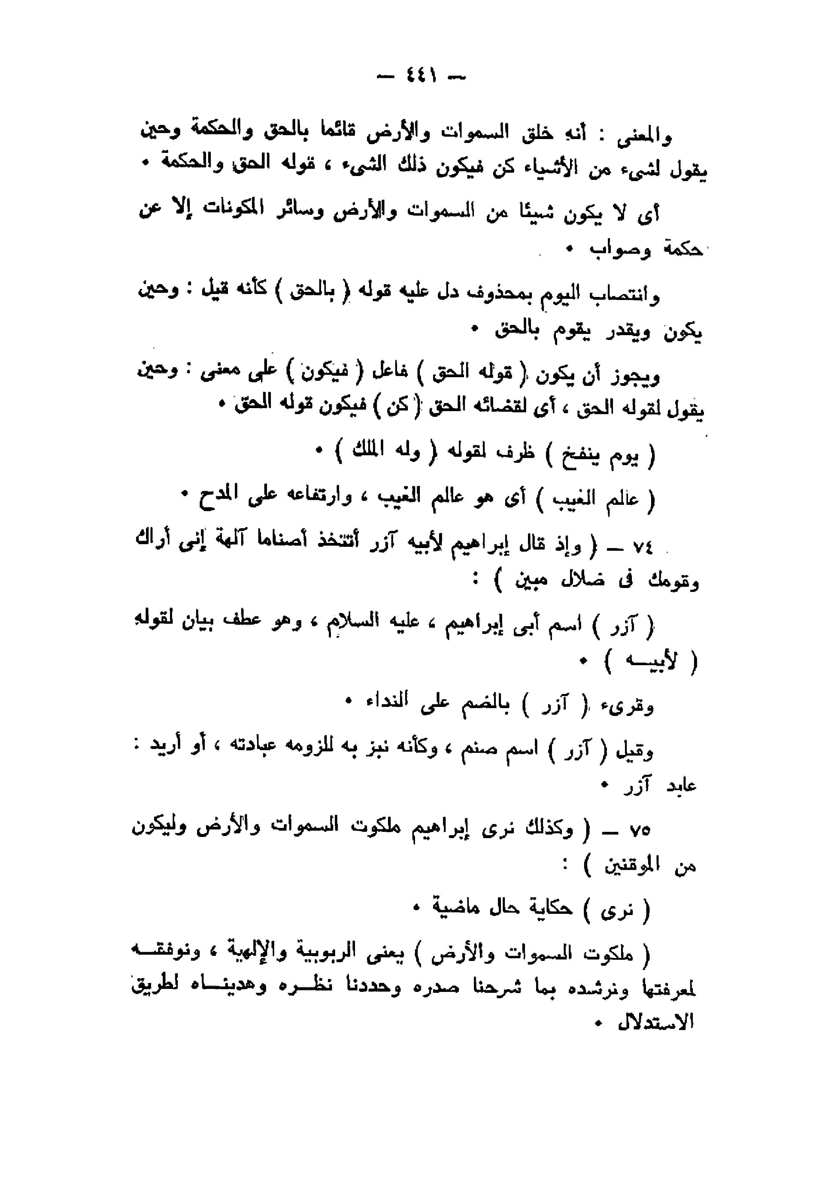 والمعنى: أنه خلق السموات والأرض قائما بالحق والحكمة وحين يقول لشىء من الأشياء كن فيكون ذلك الشيء، قوله الحق والحكمة.