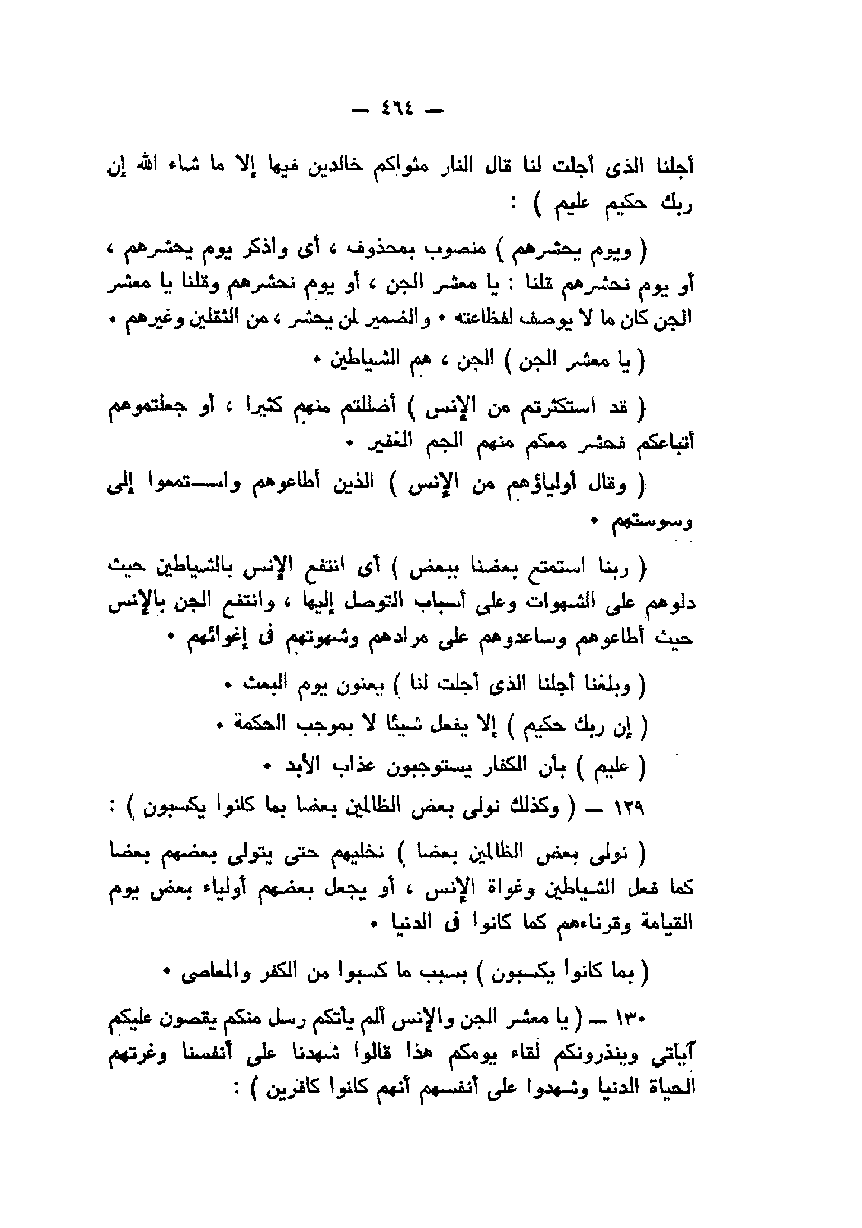 [سورة الأنعام (6) : الآيات 129 الى 130]