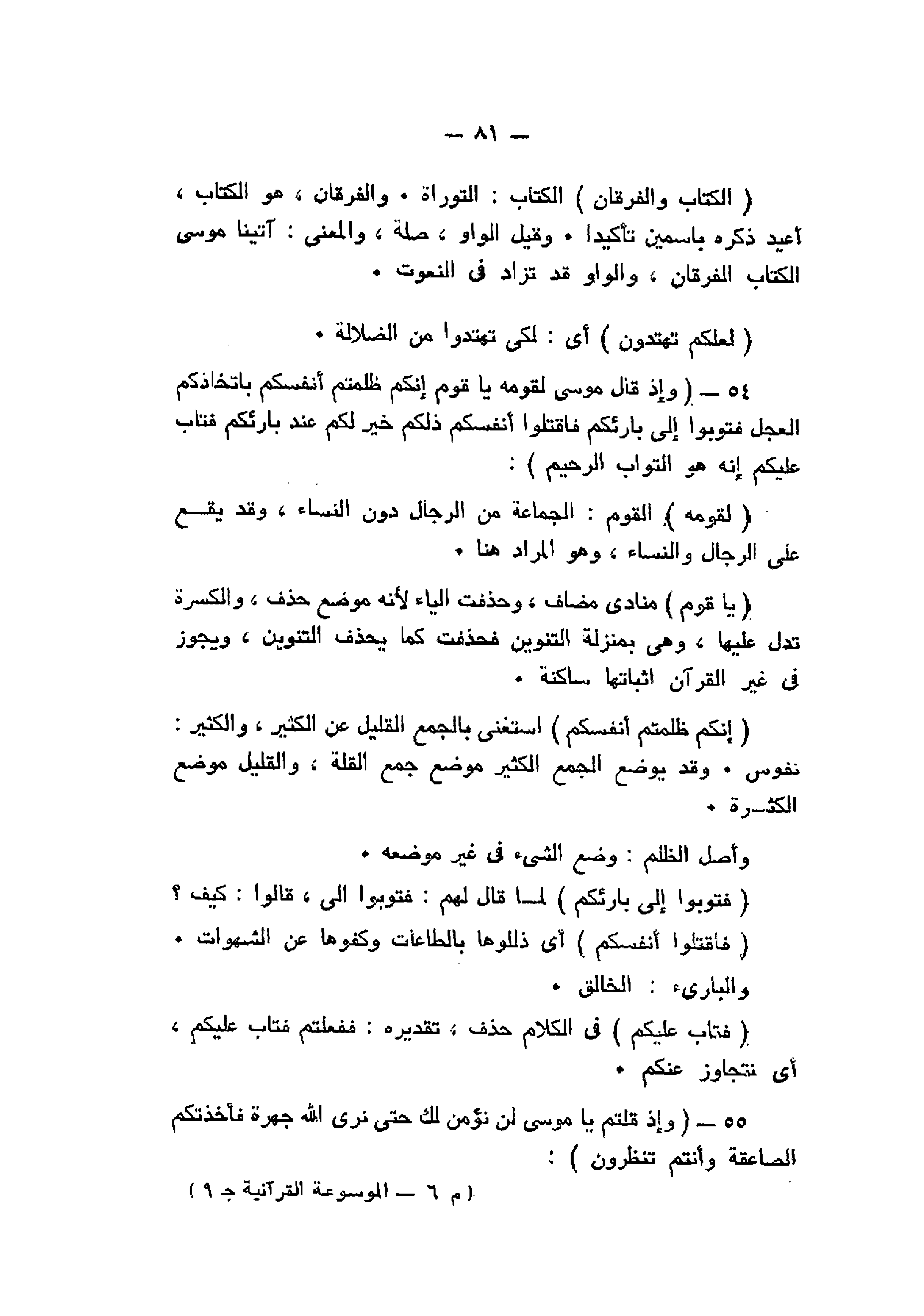 الْكِتابَ وَالْفُرْقانَ الكتاب: التوراة. والفرقان، هو الكتاب، أعيد ذكره باسمين تأكيدا. وقيل الواو، صلة، والمعنى: آتينا موسى الكتاب الفرقان، والواو قد تزاد فى النعوت.