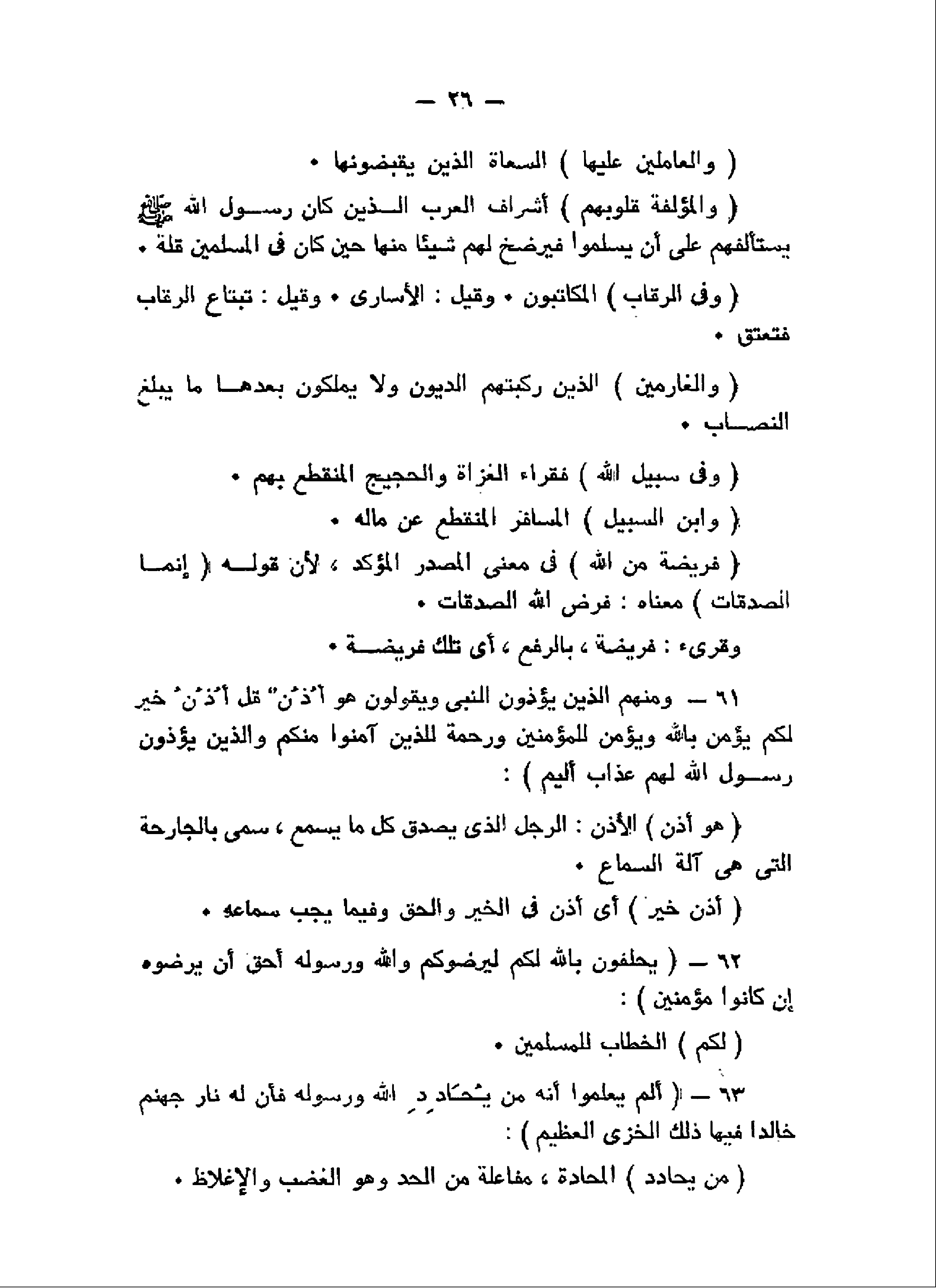 وَالْمُؤَلَّفَةِ قُلُوبُهُمْ أشراف العرب الذين كان رسول الله صلّى الله عليه وسلم يستألفهم على أن يسلموا فيرضخ لهم شيئا منها حين كان فى المسلمين قلة.