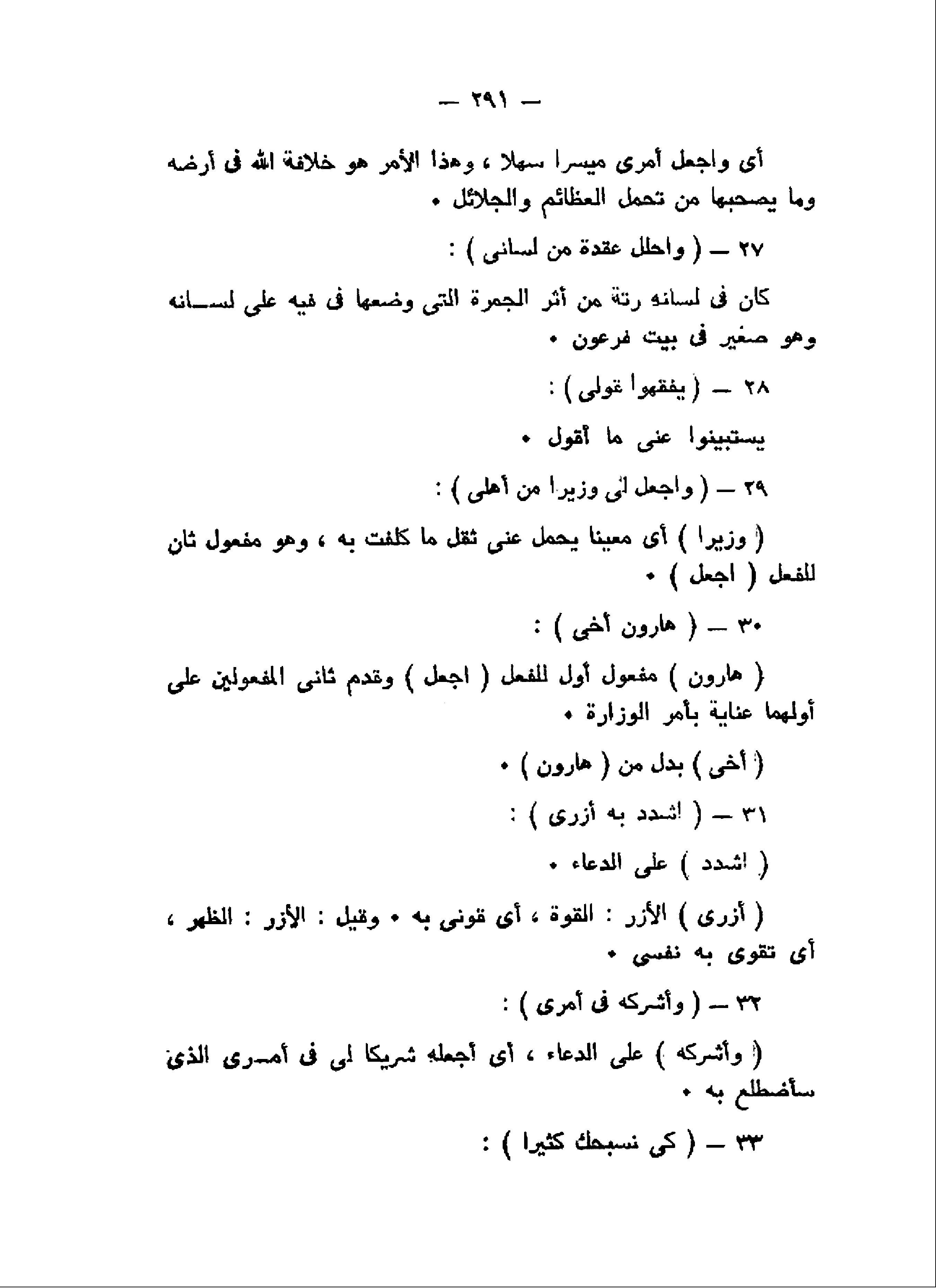 وَاحْلُلْ عُقْدَةً مِنْ لِسانِي (27) يَفْقَهُوا قَوْلِي (28) وَاجْعَلْ لِي وَزِيراً مِنْ أَهْلِي (29) هارُونَ أَخِي (30) اشْدُدْ بِهِ أَزْرِي (31)
