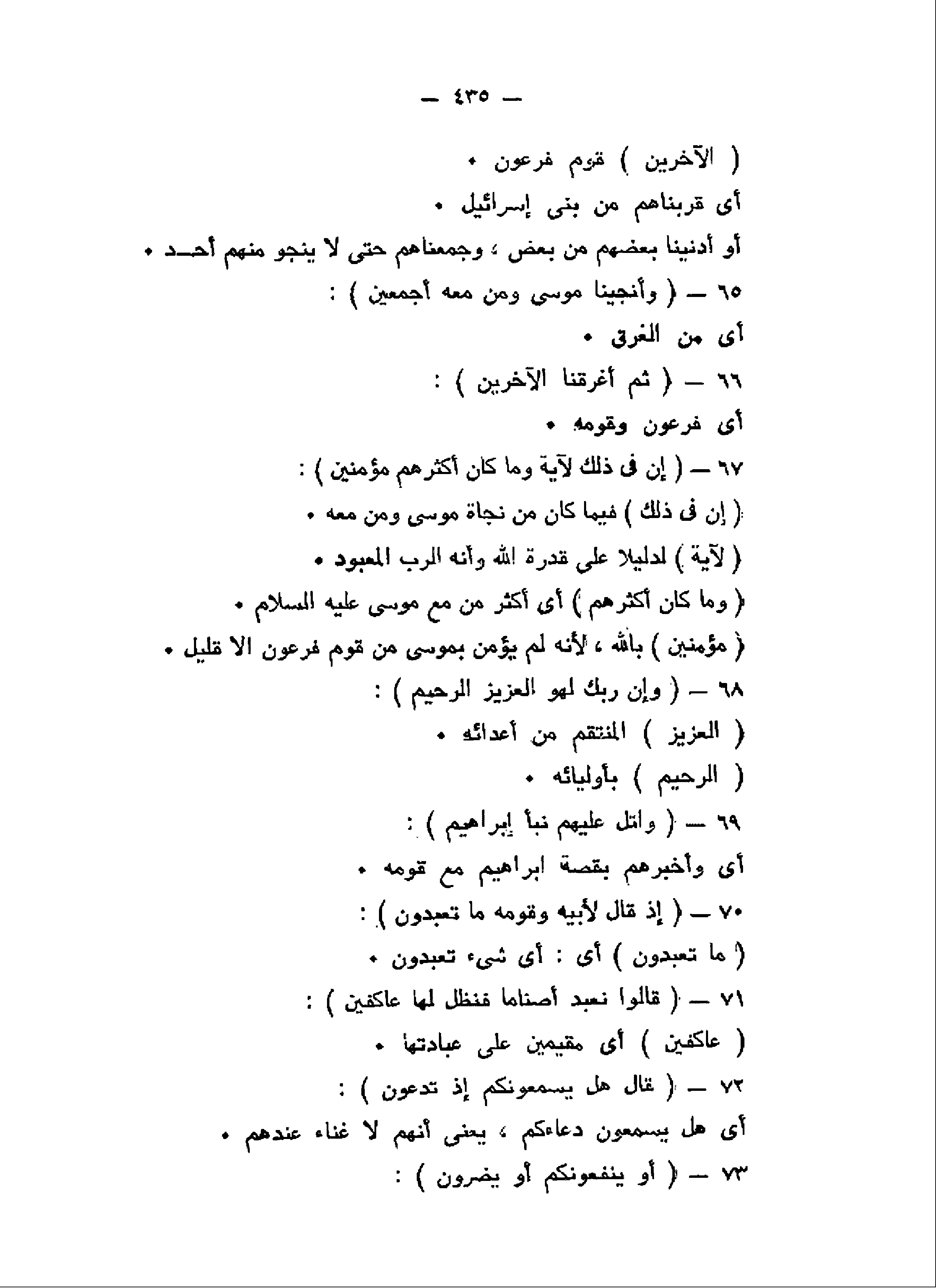 وَأَنْجَيْنا مُوسى وَمَنْ مَعَهُ أَجْمَعِينَ (65) ثُمَّ أَغْرَقْنَا الْآخَرِينَ (66) إِنَّ فِي ذلِكَ لَآيَةً وَما كانَ أَكْثَرُهُمْ مُؤْمِنِينَ (67) وَإِنَّ رَبَّكَ لَهُوَ الْعَزِيزُ الرَّحِيمُ (68) وَاتْلُ عَلَيْهِمْ نَبَأَ إِبْراهِيمَ (69)
