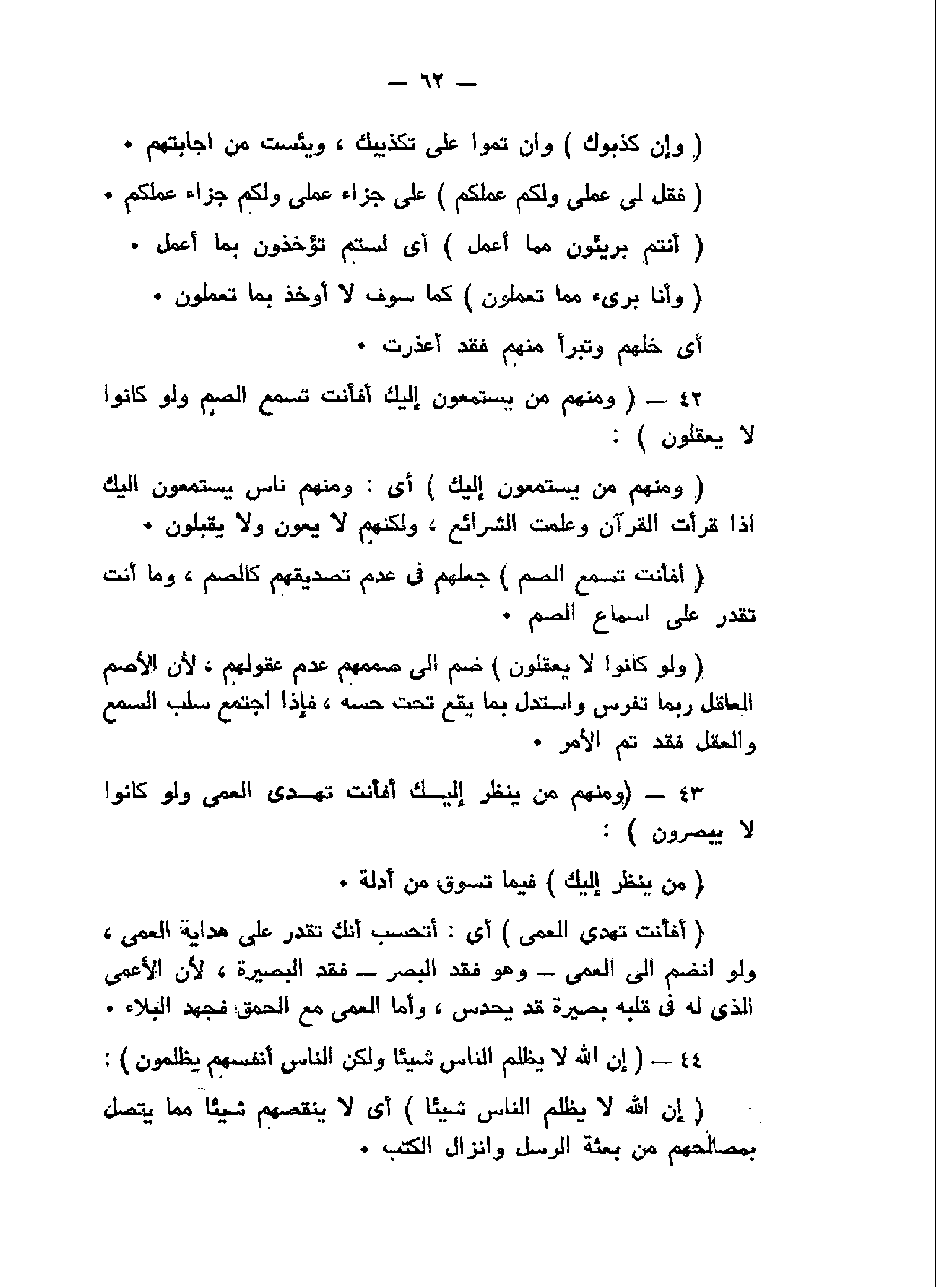 وَمِنْهُمْ مَنْ يَسْتَمِعُونَ إِلَيْكَ أَفَأَنْتَ تُسْمِعُ الصُّمَّ وَلَوْ كانُوا لا يَعْقِلُونَ (42) وَمِنْهُمْ مَنْ يَنْظُرُ إِلَيْكَ أَفَأَنْتَ تَهْدِي الْعُمْيَ وَلَوْ كانُوا لا يُبْصِرُونَ (43) إِنَّ اللَّهَ لا يَظْلِمُ النَّاسَ شَيْئاً وَلكِنَّ النَّاسَ أَنْفُسَهُمْ يَظْلِمُونَ (44)