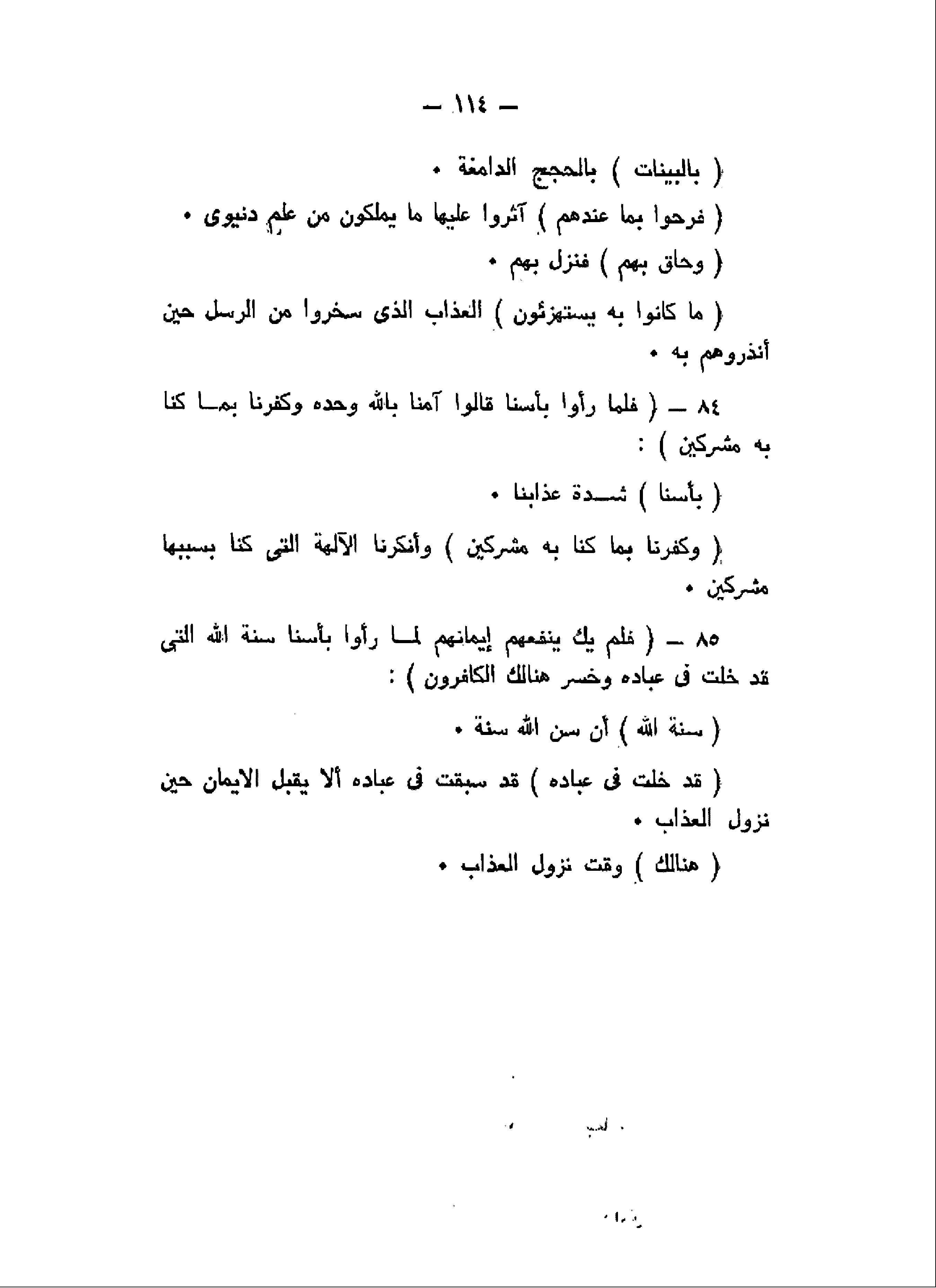 85- فَلَمْ يَكُ يَنْفَعُهُمْ إِيمانُهُمْ لَمَّا رَأَوْا بَأْسَنا سُنَّتَ اللَّهِ الَّتِي قَدْ خَلَتْ فِي عِبادِهِ وَخَسِرَ هُنالِكَ الْكافِرُونَ: