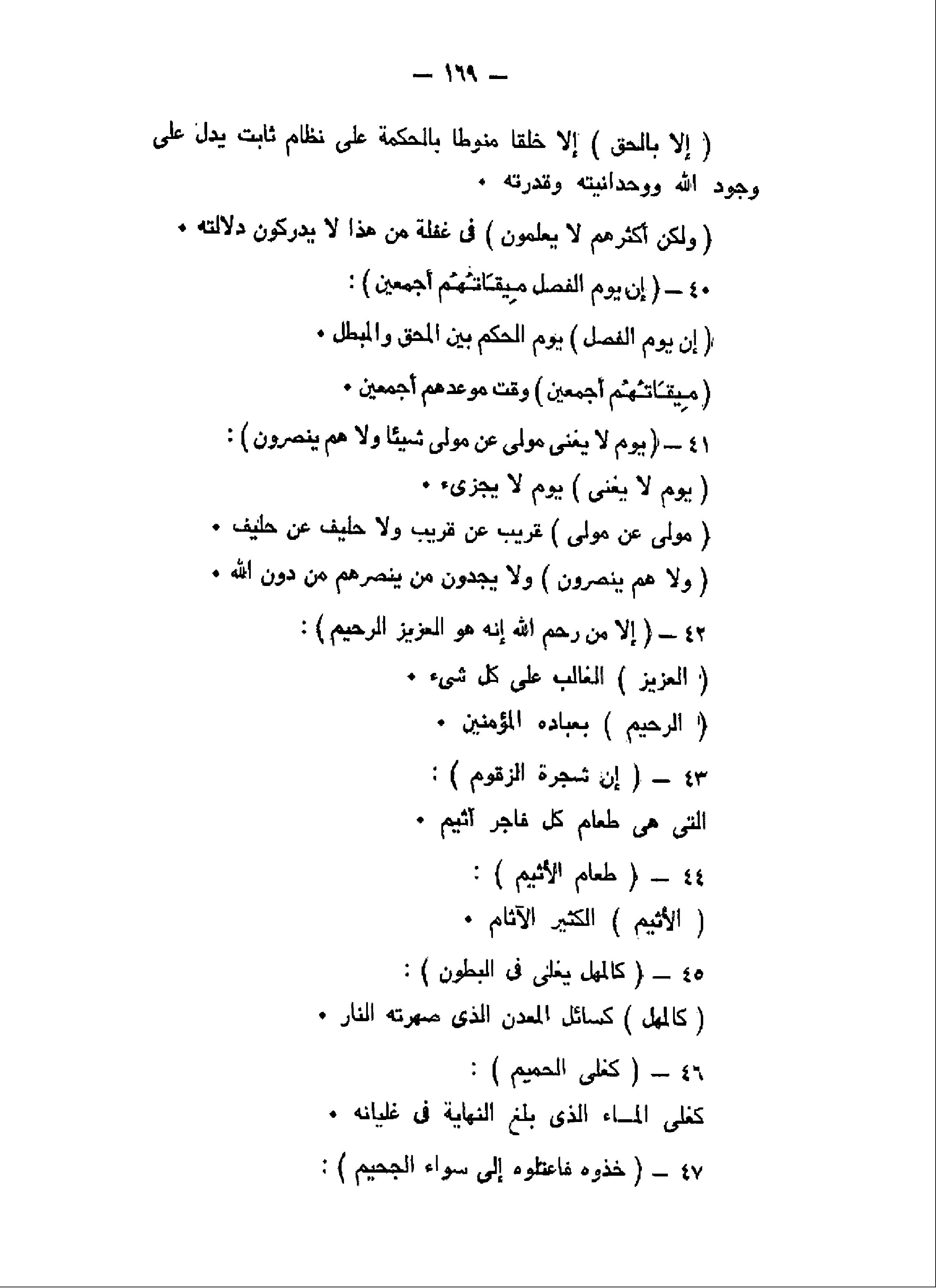إِنَّ يَوْمَ الْفَصْلِ مِيقاتُهُمْ أَجْمَعِينَ (40) يَوْمَ لا يُغْنِي مَوْلًى عَنْ مَوْلًى شَيْئاً وَلا هُمْ يُنْصَرُونَ (41) إِلاَّ مَنْ رَحِمَ اللَّهُ إِنَّهُ هُوَ الْعَزِيزُ الرَّحِيمُ (42) إِنَّ شَجَرَةَ الزَّقُّومِ (43) طَعامُ الْأَثِيمِ (44)