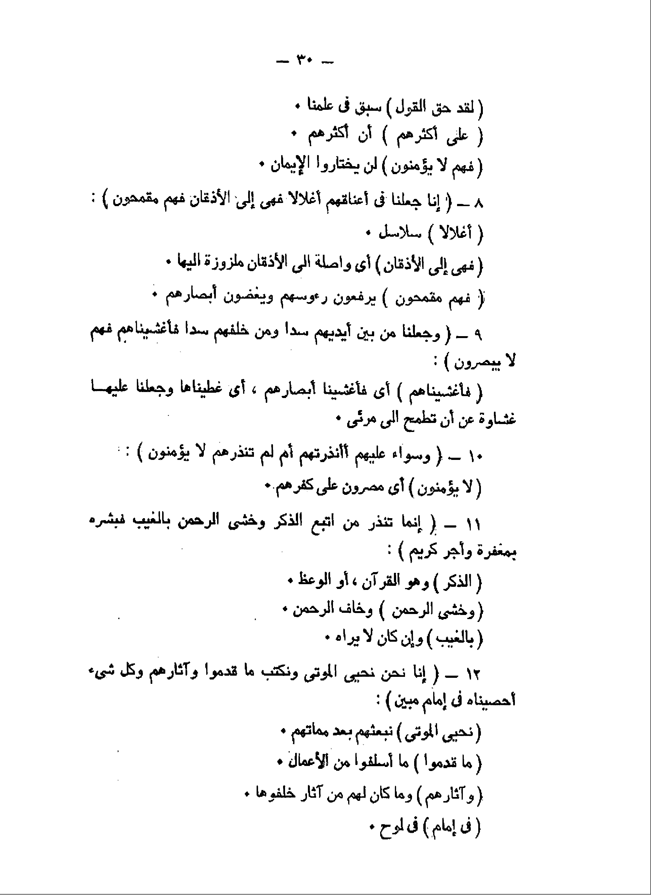 إِنَّا جَعَلْنا فِي أَعْناقِهِمْ أَغْلالاً فَهِيَ إِلَى الْأَذْقانِ فَهُمْ مُقْمَحُونَ (8) وَجَعَلْنا مِنْ بَيْنِ أَيْدِيهِمْ سَدًّا وَمِنْ خَلْفِهِمْ سَدًّا فَأَغْشَيْناهُمْ فَهُمْ لا يُبْصِرُونَ (9)