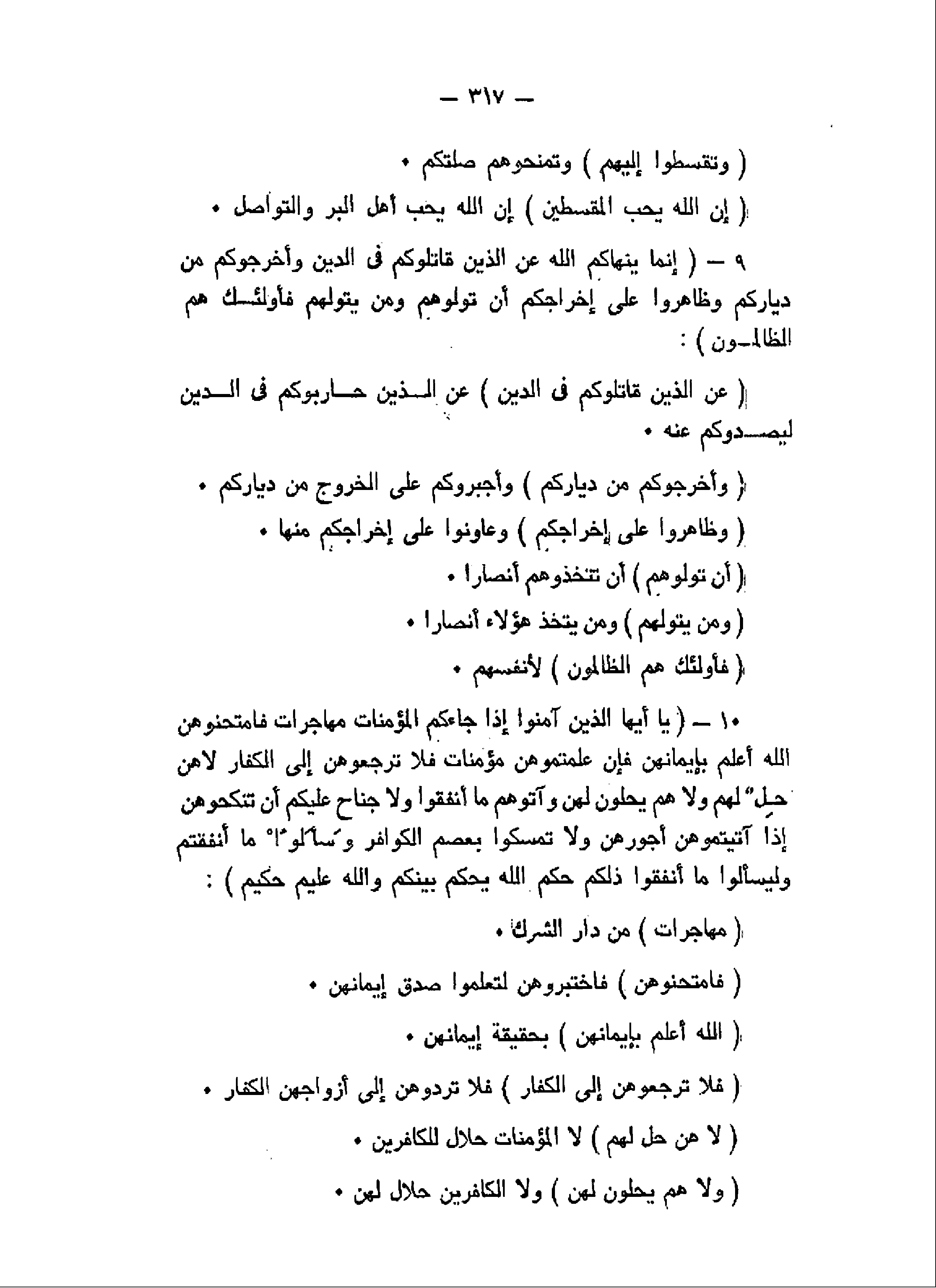 9- إِنَّما يَنْهاكُمُ اللَّهُ عَنِ الَّذِينَ قاتَلُوكُمْ فِي الدِّينِ وَأَخْرَجُوكُمْ مِنْ دِيارِكُمْ وَظاهَرُوا عَلى إِخْراجِكُمْ أَنْ تَوَلَّوْهُمْ وَمَنْ يَتَوَلَّهُمْ فَأُولئِكَ هُمُ الظَّالِمُونَ: