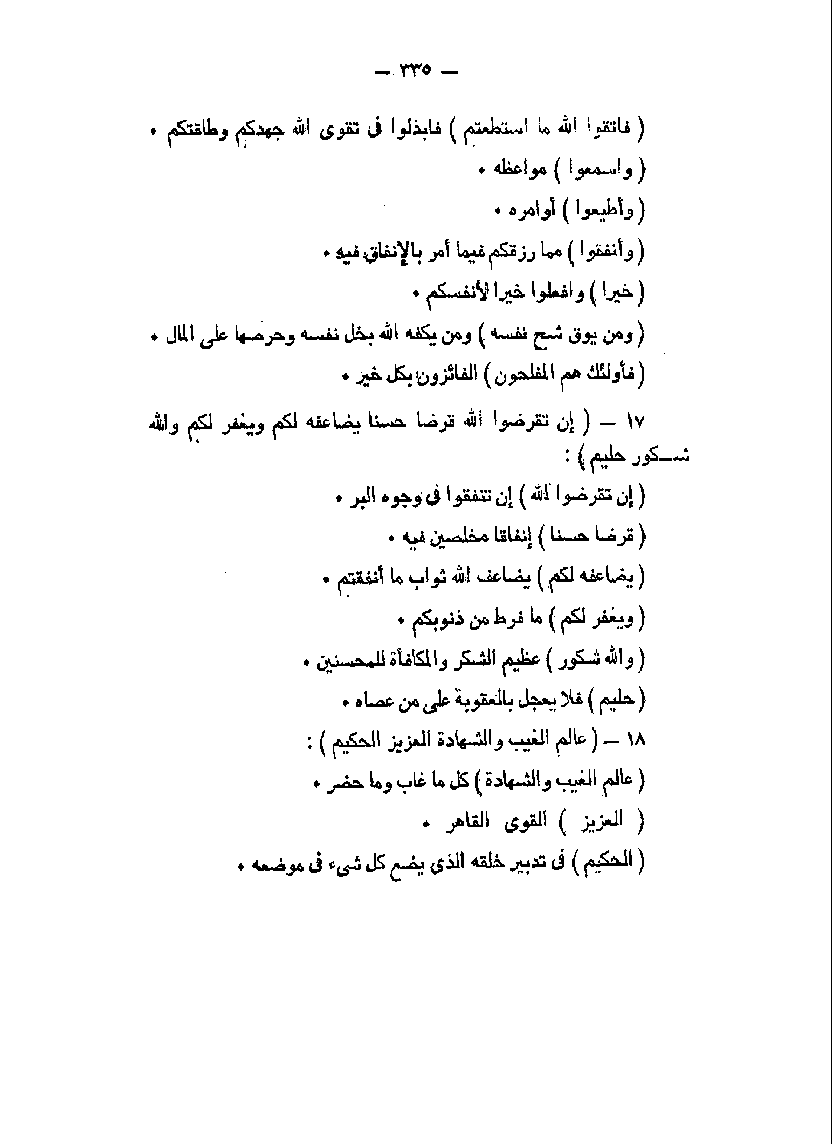 إِنْ تُقْرِضُوا اللَّهَ قَرْضاً حَسَناً يُضاعِفْهُ لَكُمْ وَيَغْفِرْ لَكُمْ وَاللَّهُ شَكُورٌ حَلِيمٌ (17) عالِمُ الْغَيْبِ وَالشَّهادَةِ الْعَزِيزُ الْحَكِيمُ (18)