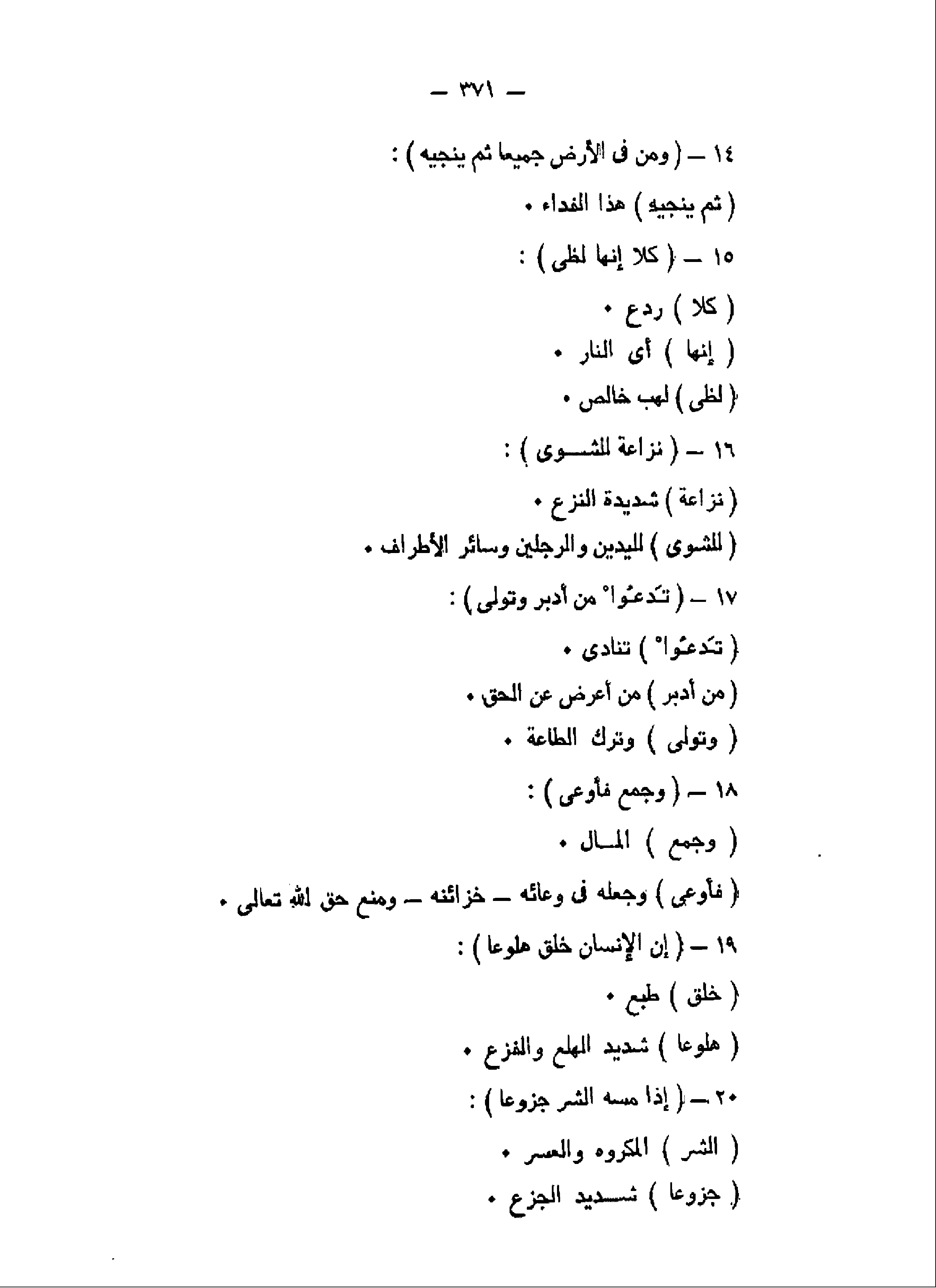 وَمَنْ فِي الْأَرْضِ جَمِيعاً ثُمَّ يُنْجِيهِ (14) كَلاَّ إِنَّها لَظى (15) نَزَّاعَةً لِلشَّوى (16) تَدْعُوا مَنْ أَدْبَرَ وَتَوَلَّى (17) وَجَمَعَ فَأَوْعى (18)