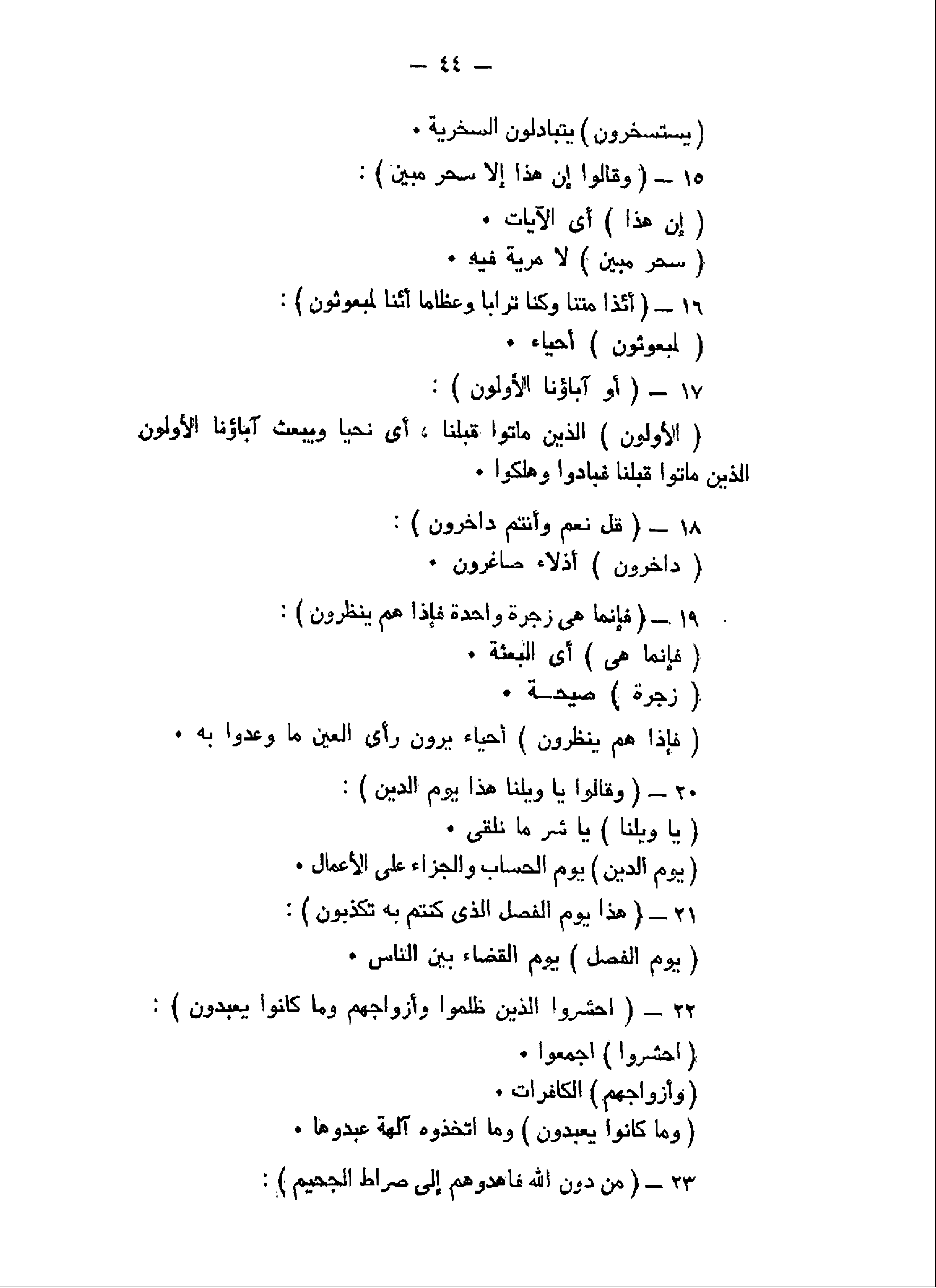وَقالُوا إِنْ هذا إِلاَّ سِحْرٌ مُبِينٌ (15) أَإِذا مِتْنا وَكُنَّا تُراباً وَعِظاماً أَإِنَّا لَمَبْعُوثُونَ (16) أَوَآباؤُنَا الْأَوَّلُونَ (17) قُلْ نَعَمْ وَأَنْتُمْ داخِرُونَ (18) فَإِنَّما هِيَ زَجْرَةٌ واحِدَةٌ فَإِذا هُمْ يَنْظُرُونَ (19)