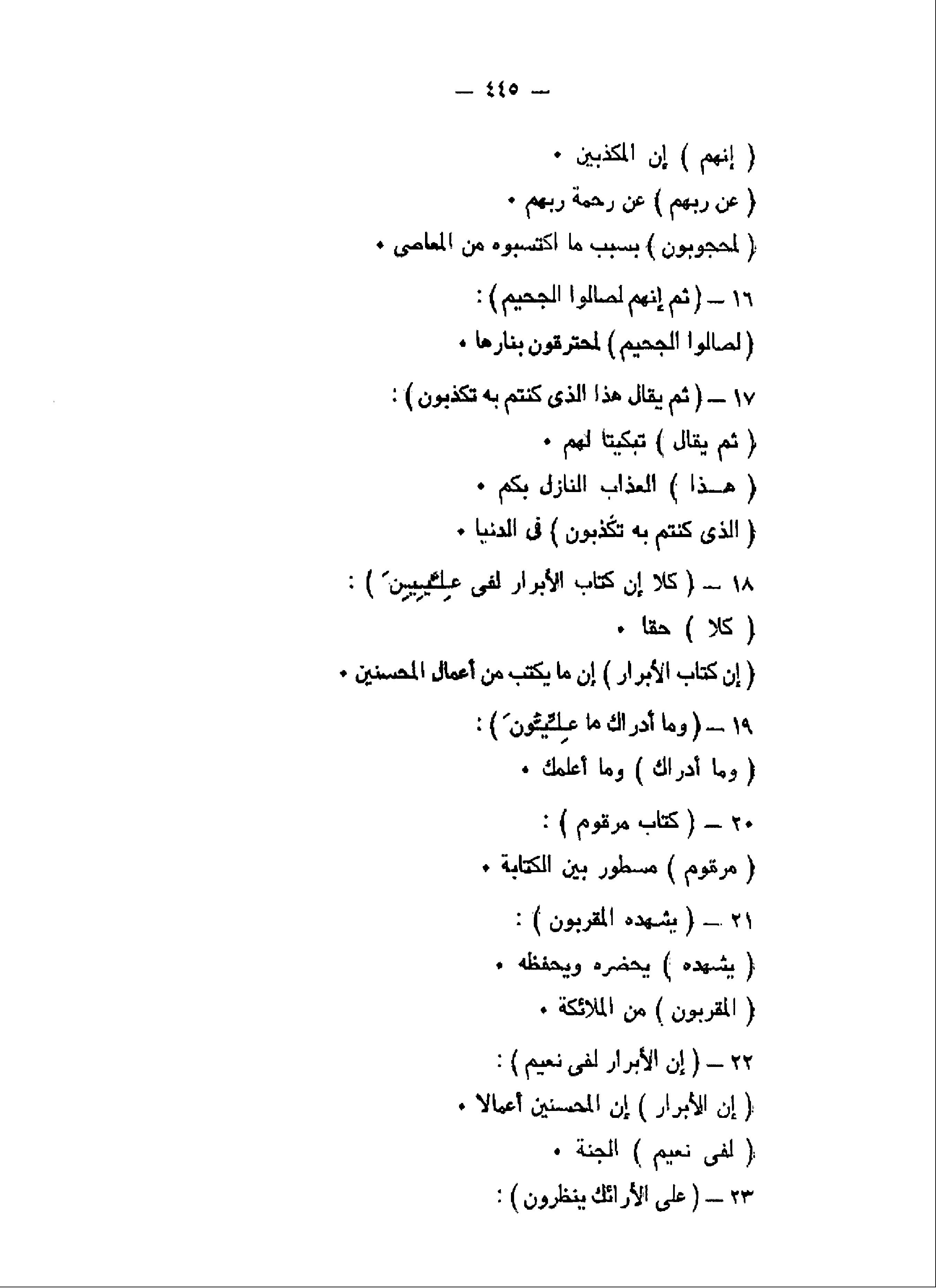 ثُمَّ إِنَّهُمْ لَصالُوا الْجَحِيمِ (16) ثُمَّ يُقالُ هذَا الَّذِي كُنْتُمْ بِهِ تُكَذِّبُونَ (17) كَلاَّ إِنَّ كِتابَ الْأَبْرارِ لَفِي عِلِّيِّينَ (18) وَما أَدْراكَ ما عِلِّيُّونَ (19) كِتابٌ مَرْقُومٌ (20)