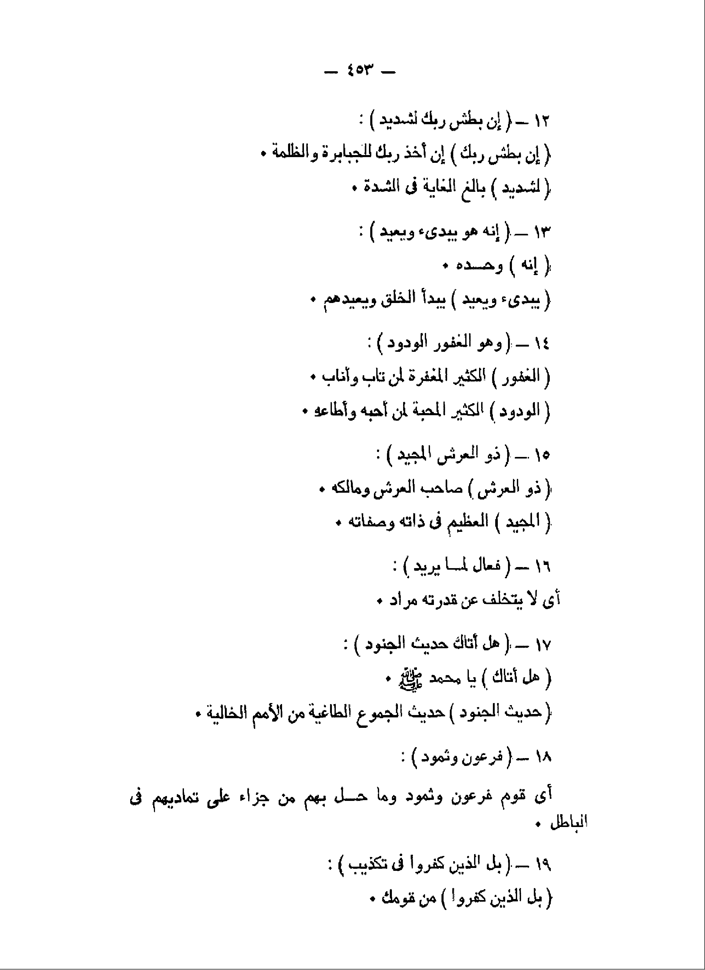 إِنَّ بَطْشَ رَبِّكَ لَشَدِيدٌ (12) إِنَّهُ هُوَ يُبْدِئُ وَيُعِيدُ (13) وَهُوَ الْغَفُورُ الْوَدُودُ (14) ذُو الْعَرْشِ الْمَجِيدُ (15) فَعَّالٌ لِما يُرِيدُ (16)