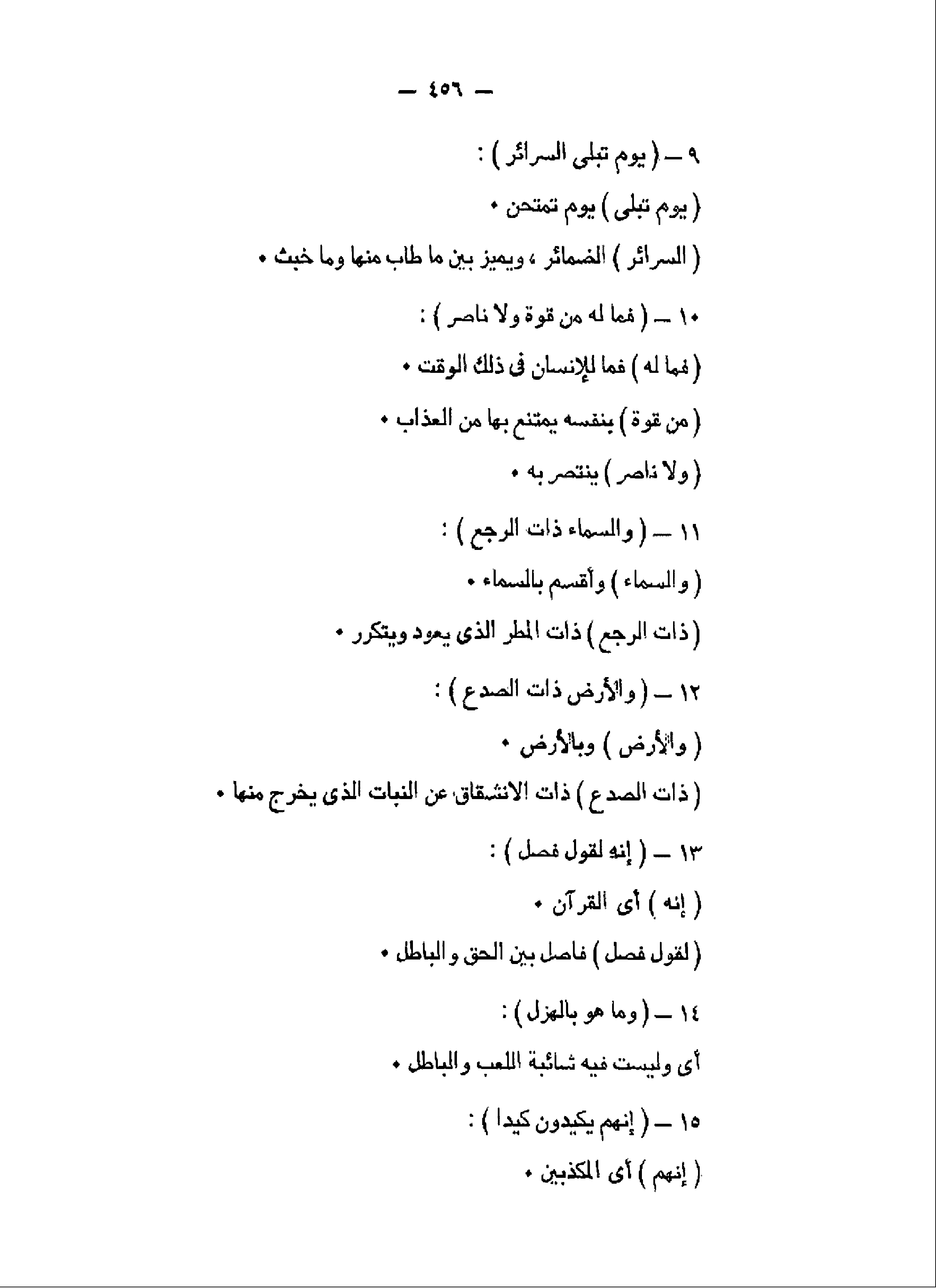 فَما لَهُ مِنْ قُوَّةٍ وَلا ناصِرٍ (10) وَالسَّماءِ ذاتِ الرَّجْعِ (11) وَالْأَرْضِ ذاتِ الصَّدْعِ (12) إِنَّهُ لَقَوْلٌ فَصْلٌ (13) وَما هُوَ بِالْهَزْلِ (14)