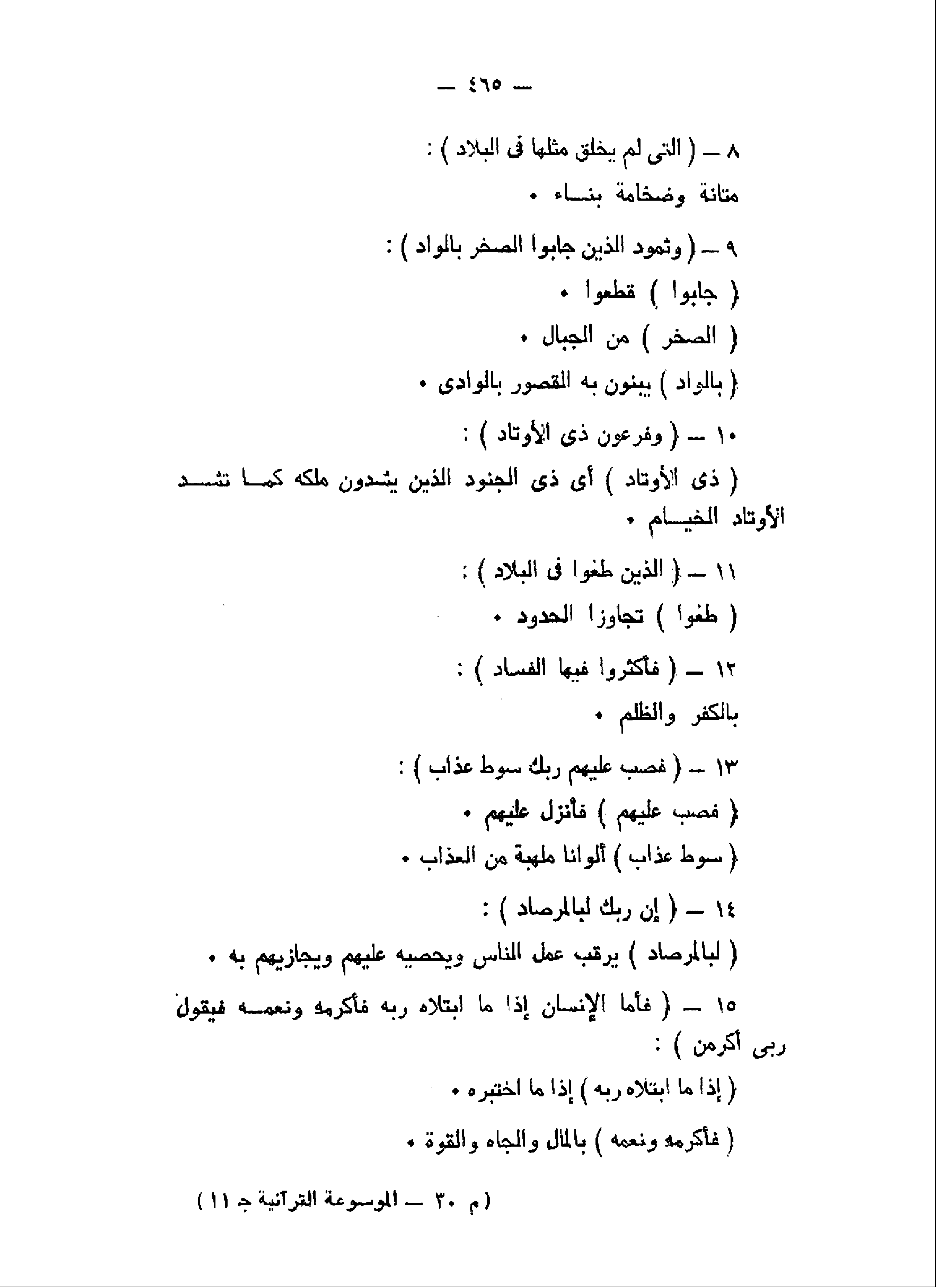 وَفِرْعَوْنَ ذِي الْأَوْتادِ (10) الَّذِينَ طَغَوْا فِي الْبِلادِ (11) فَأَكْثَرُوا فِيهَا الْفَسادَ (12) فَصَبَّ عَلَيْهِمْ رَبُّكَ سَوْطَ عَذابٍ (13) إِنَّ رَبَّكَ لَبِالْمِرْصادِ (14)