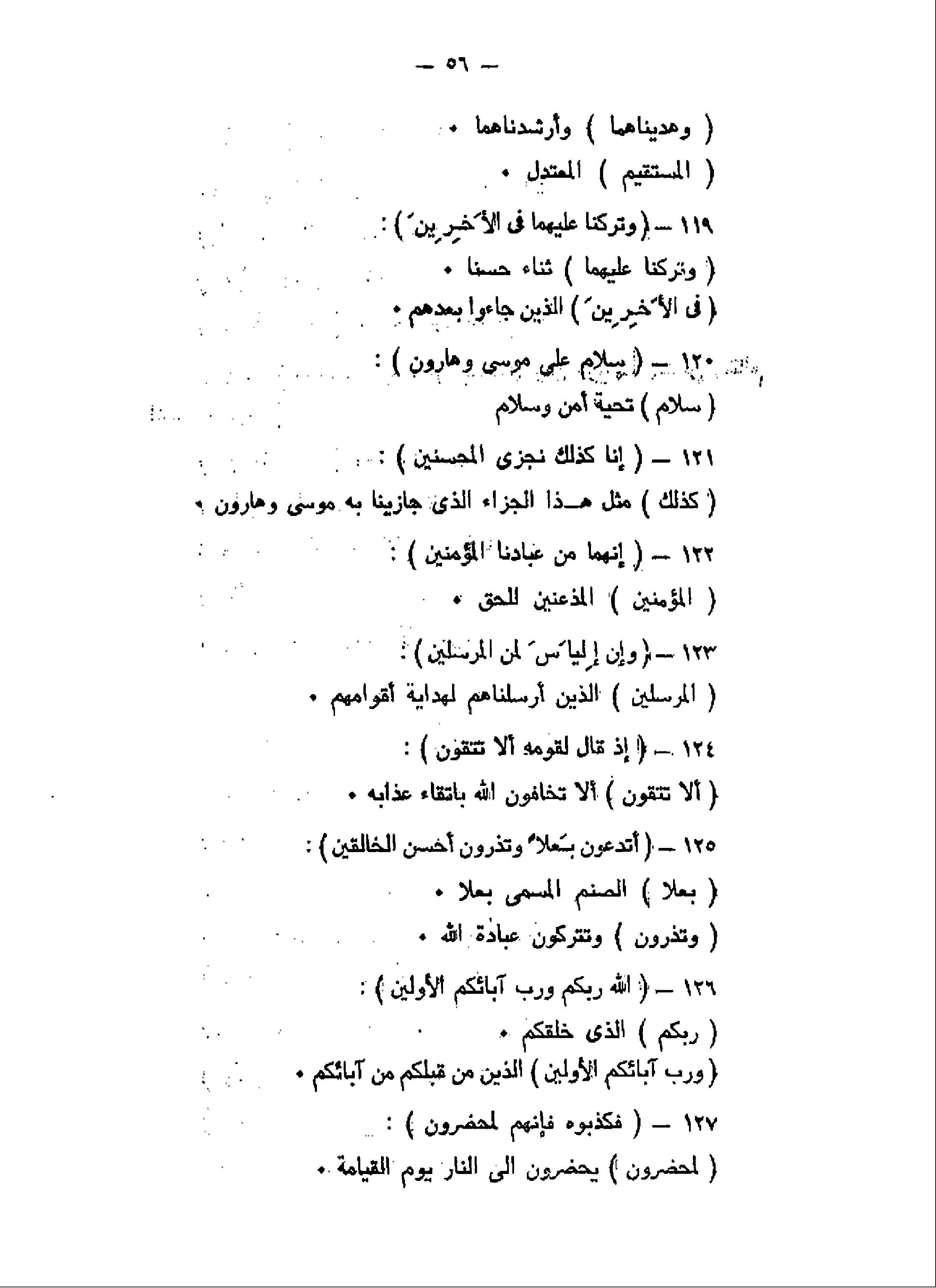 وَتَرَكْنا عَلَيْهِما فِي الْآخِرِينَ (119) سَلامٌ عَلى مُوسى وَهارُونَ (120) إِنَّا كَذلِكَ نَجْزِي الْمُحْسِنِينَ (121) إِنَّهُما مِنْ عِبادِنَا الْمُؤْمِنِينَ (122) وَإِنَّ إِلْياسَ لَمِنَ الْمُرْسَلِينَ (123)