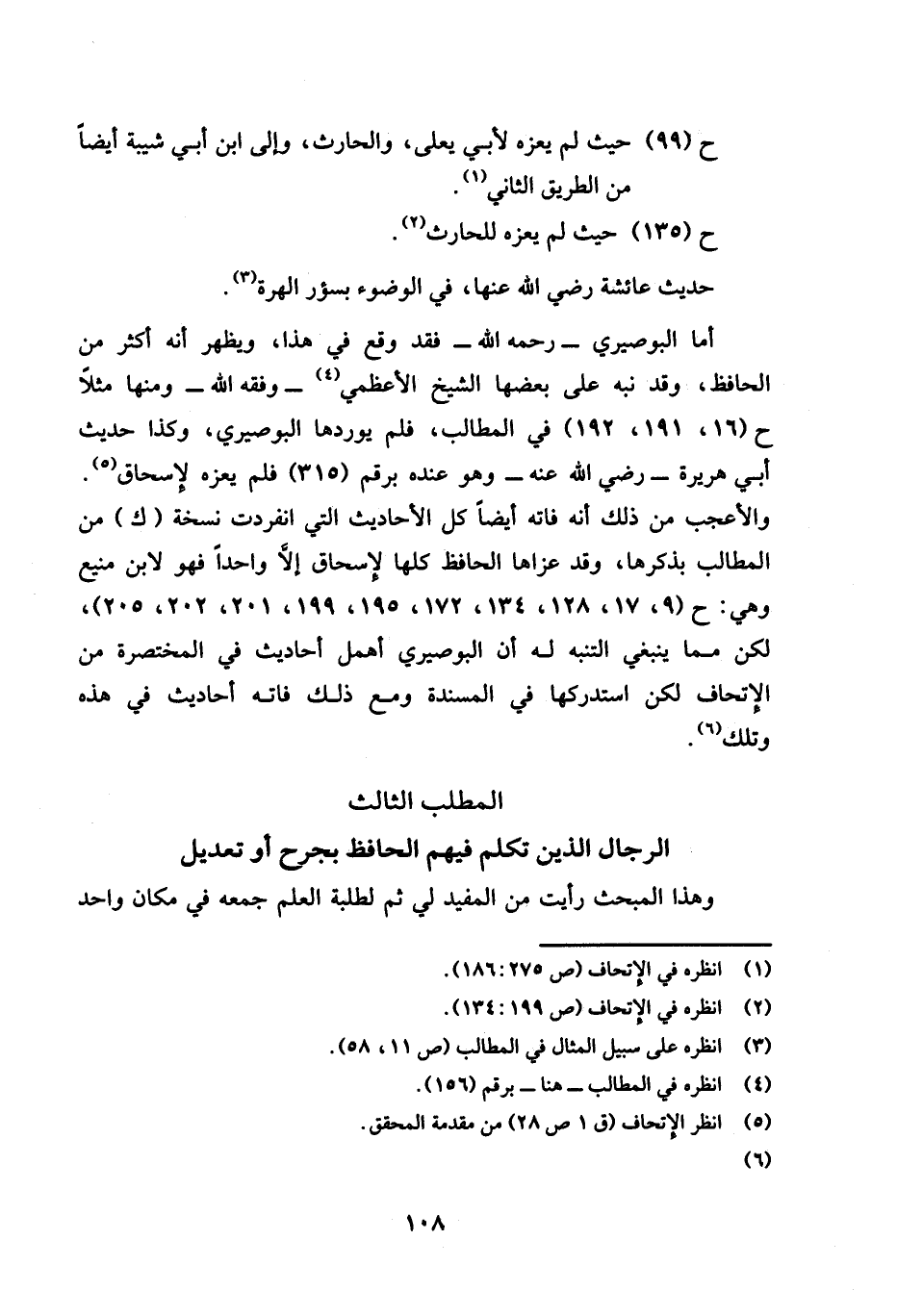 أما البوصيري -رحمه الله- فقد وقع في هذا، ويظهر أنه أكثر من الحافظ، وقد نبه على بعضها الشيخ الأعظمي (¬4) -وفقه الله- ومنها مثلًا ح (16، 191، 192) في المطالب، فلم يوردها البوصيري، وكذا حديث أبي هريرة -رضي الله عنه- وهو عنده برقم (315) فلم يعزه لإسحاق (¬5).