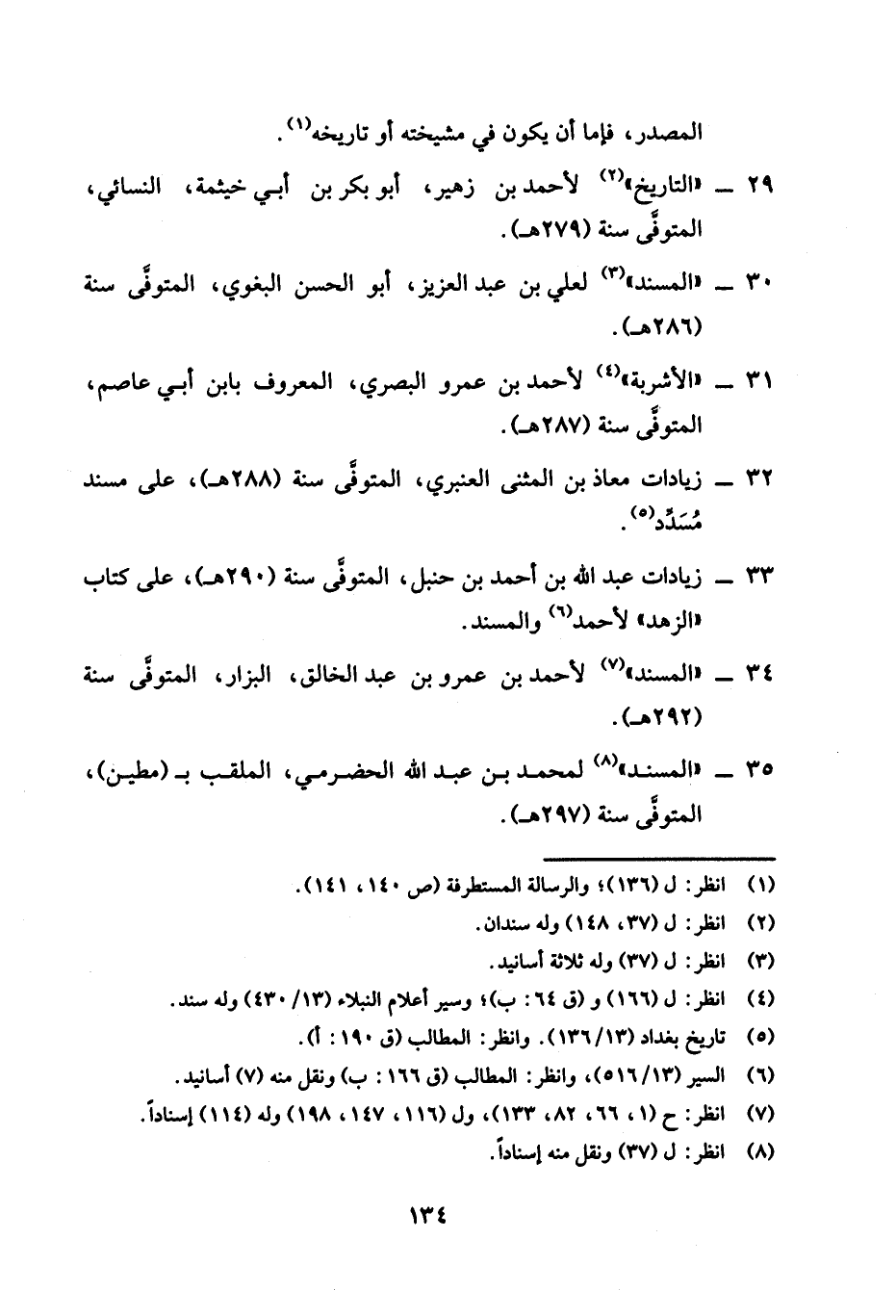 33 - زيادات عبد الله بن أحمد بن حنبل، المتوفى سنة (290 هـ)، على كتاب "الزهد" لأحمد (¬6) والمسند.