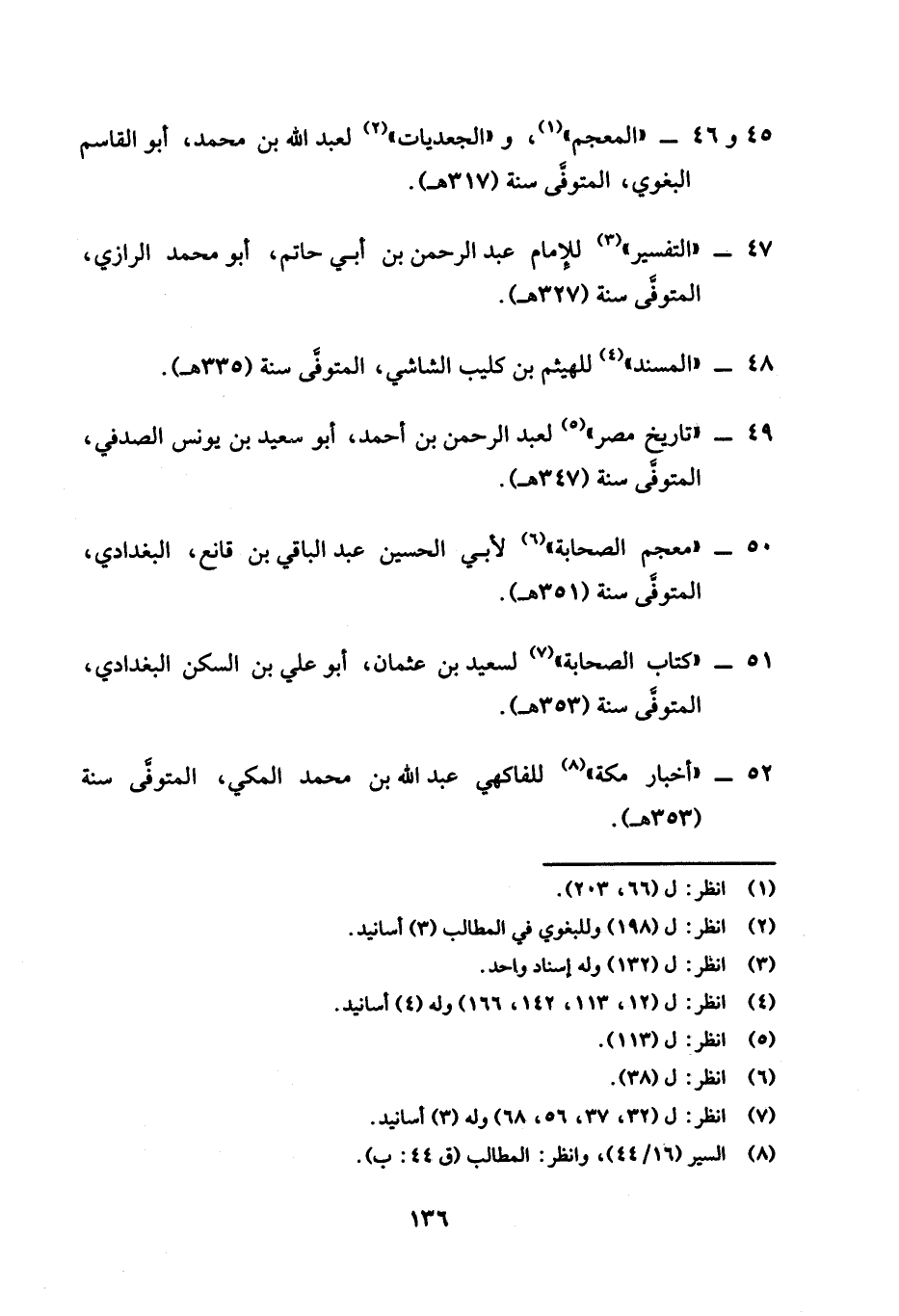 51 - "كتاب الصحابة" (¬7) لسعيد بن عثمان، أبو علي بن السكن البغدادي، المتوفى سنة (353هـ).