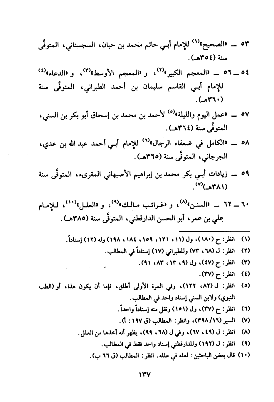 60 - 62 - "السنن" (¬8)، و "غرائب مالك" (¬9)، و "العلل" (¬10)، للإمام على بن عمر، أبو الحسن الدارقطني، المتوفى سنة (385 هـ).