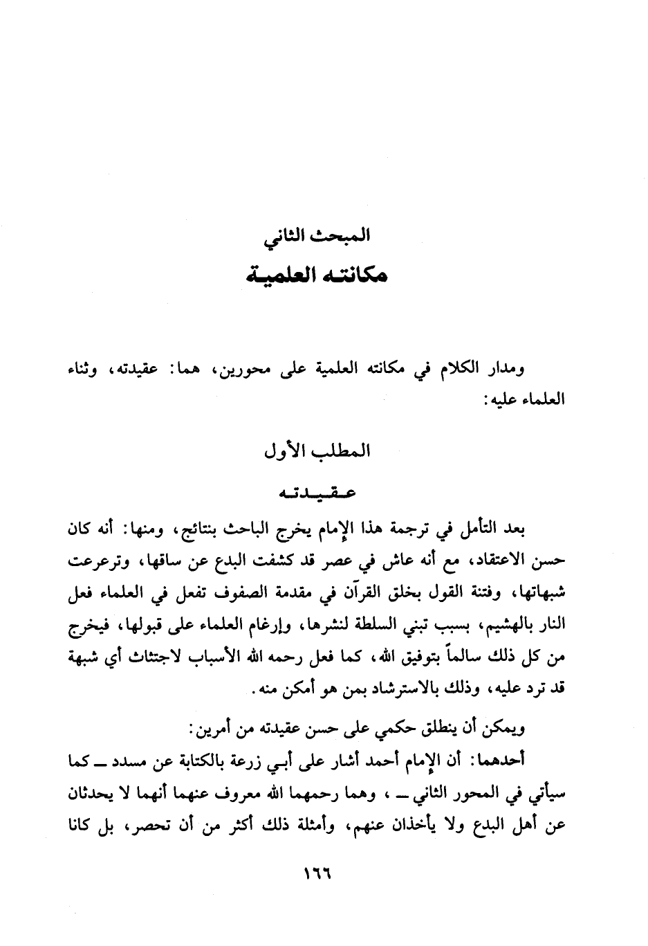 ومدار الكلام في مكانته العلمية على محورين، هما: عقيدته، وثناء العلماء عليه: