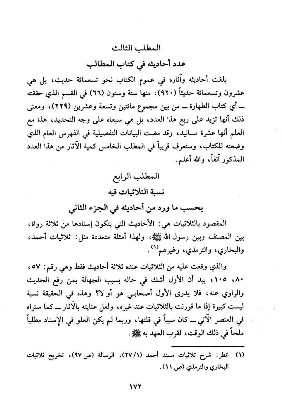 المطلب الرابع نسبة الثلاثيات فيه بحسب ما ورد من أحاديثه في الجزء الثاني