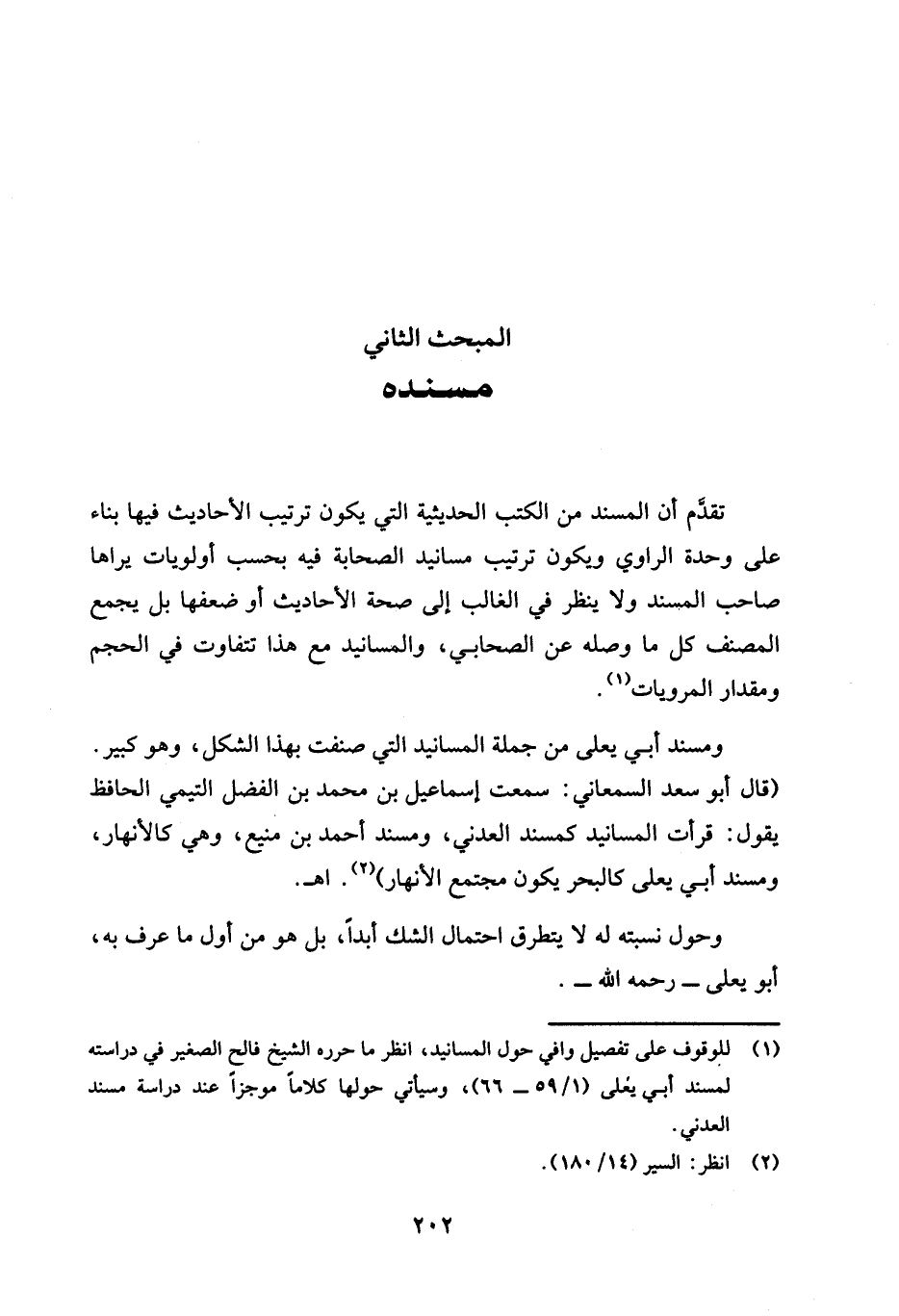 (¬1) للوقوف على تفصيل وافي حول المسانيد، انظر ما حرره الشيخ فالح الصغير في دراسته لمسند أبي يعلى (1/ 59 - 66)، وسيأتي حولها كلامًا موجزًا عند دراسة مسند العدني.