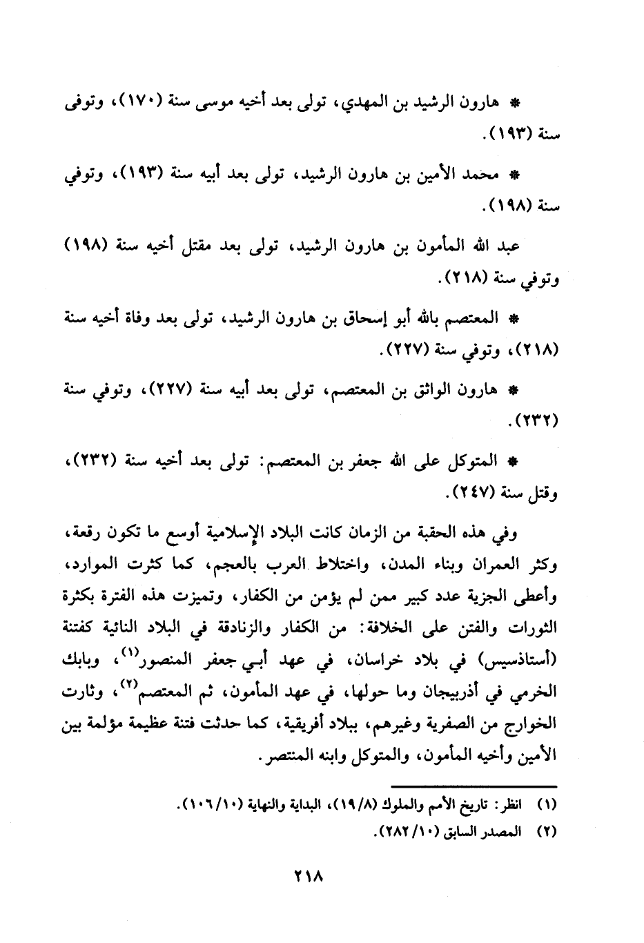 * المعتصم باللهِ أبو إسحاق بن هارون الرشيد، تولى بعد وفاة أخيه سنة (218)، وتوفي سنة (227).