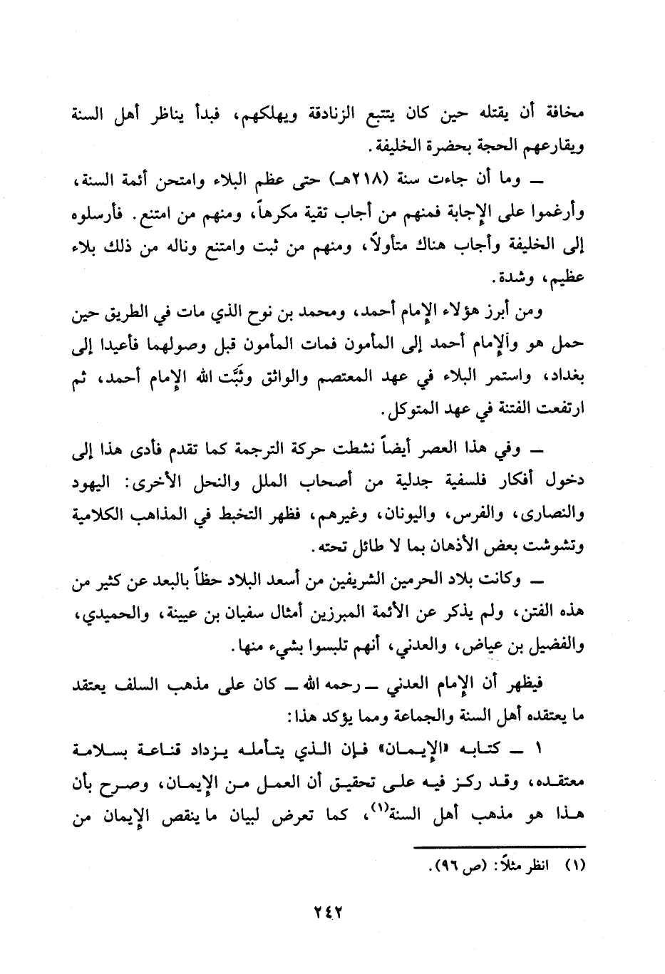 1 - كتابه "الإيمان" فإن الذي يتأمله يزداد قناعة بسلامة معتقده، وقد ركز فيه على تحقيق أن العمل من الإيمان، وصرح بأن هذا هو مذهب أهل السنة (¬1)، كما تعرض لبيان ما ينقص الإيمان من