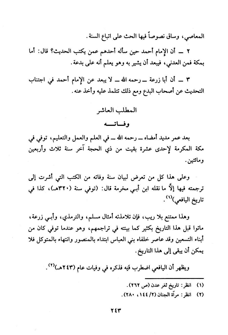 ويظهر أن اليافعي اضطرب فيه فذكره في وفيات عام (243 هـ) (¬2).