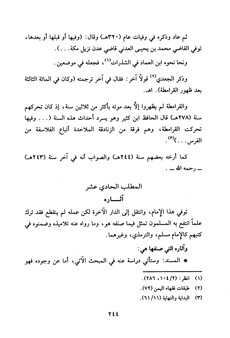كما أرخه بعضهم سنة (244هـ) والصواب أنه في آخر سنة (243 هـ) -رحمه الله-.