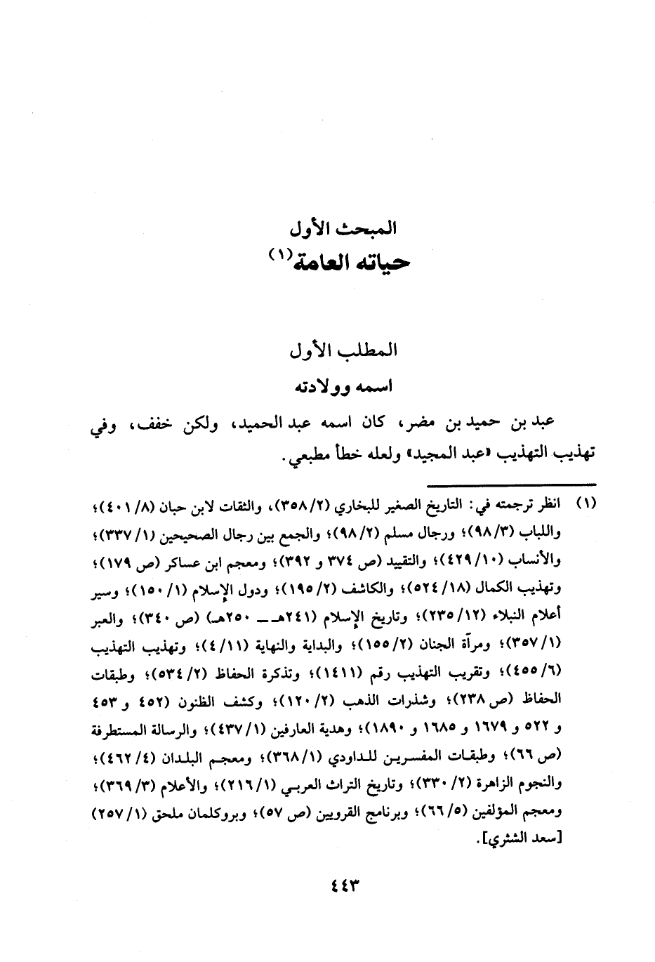 عبد بن حميد بن مضر، كان اسمه عبد الحميد، ولكن خفف، وفي تهذيب التهذيب "عبد المجيد" ولعله خطأ مطبعي.