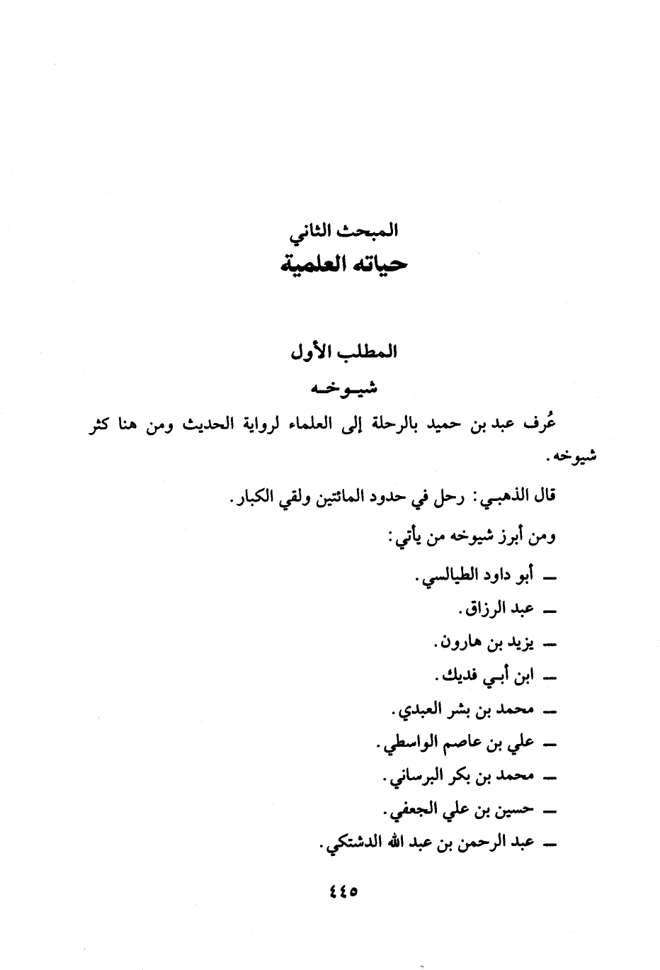 عُرف عبد بن حميد بالرحلة إلى العلماء لرواية الحديث ومن هنا كثر شيوخه.