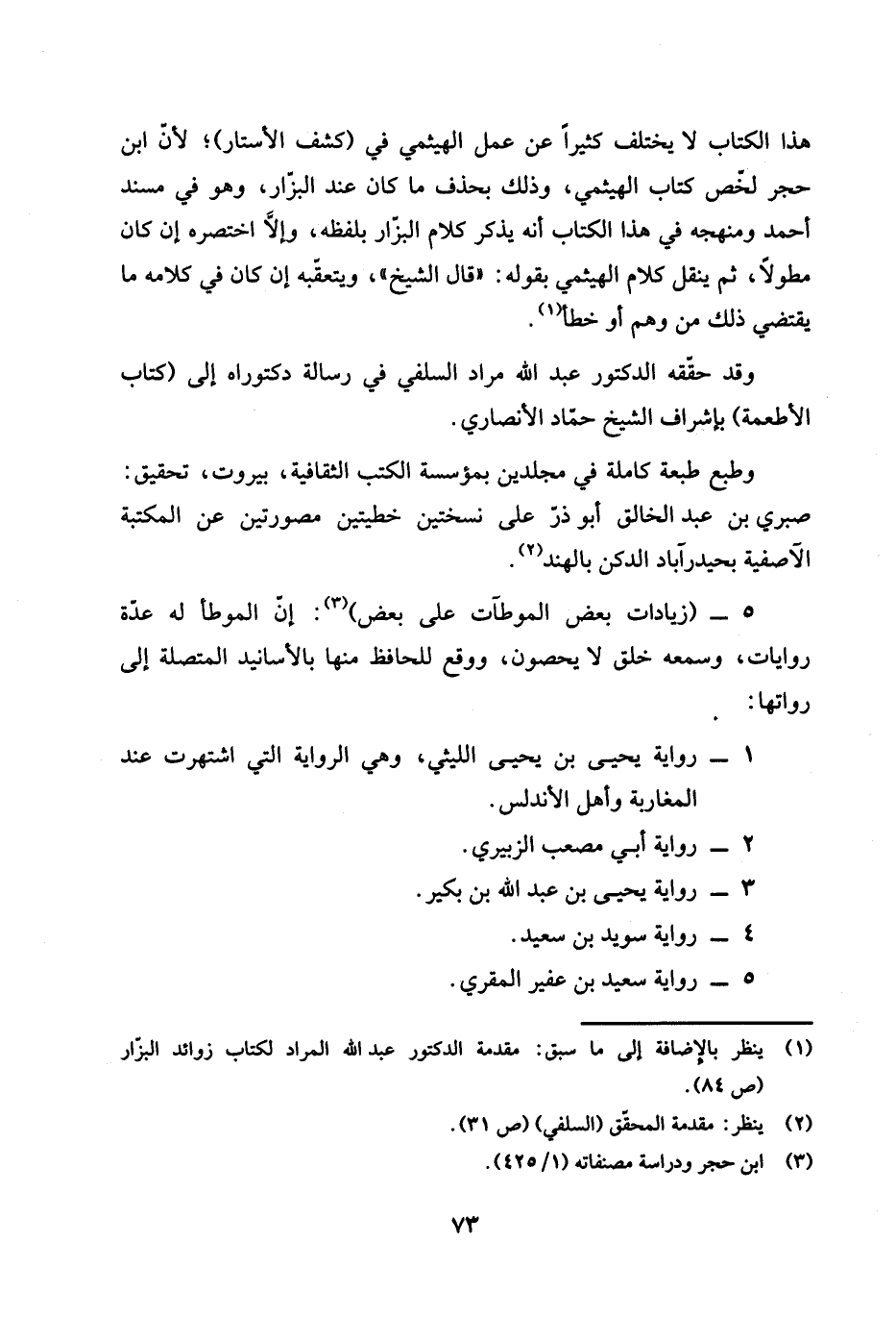(¬1) ينظر بالإضافة إلى ما سبق: مقدمة الدكتور عبد الله المراد لكتاب زوائد البزّار (ص 84).