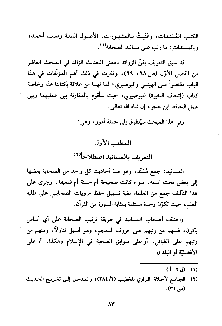 المطلب الأول التعريف بالمسانيد اصطلاحًا (¬2)