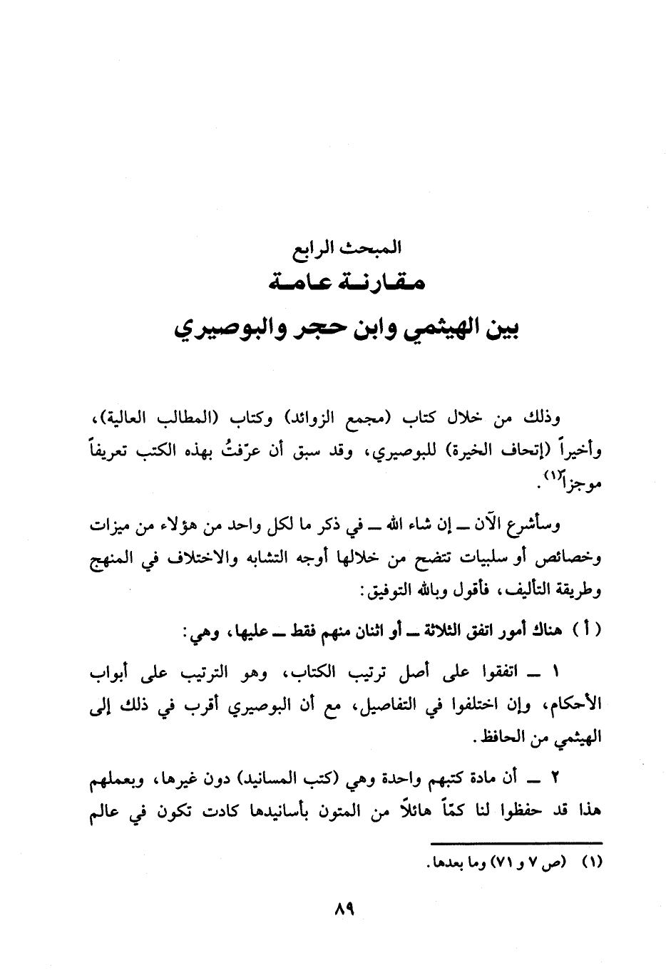 المبحث الرابع مقارنة عامة بين الهيثمي وابن حجر والبوصيري