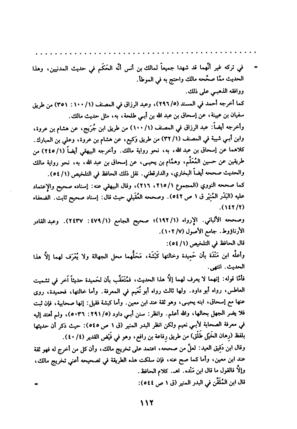 = في تركه غير أنَّهما قد شهدا جميعًا لمالك بن أنس أنَّه الحكم في حديث المدنيين, وهذا الحديث مِمَّا صححه مالك واحتج به في الموطأ.