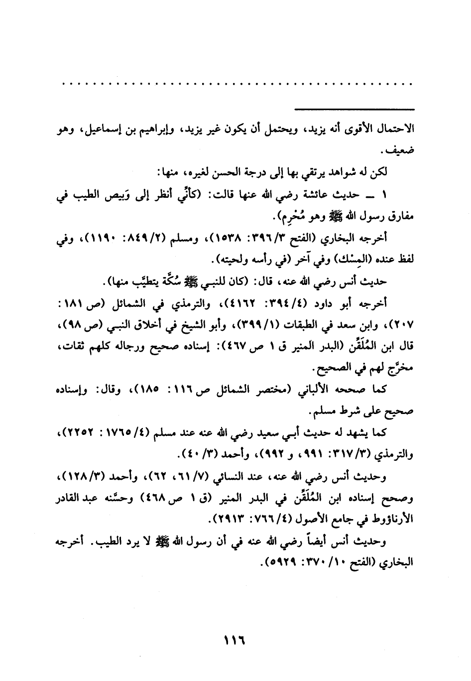 1 - حديث عائشة رضي الله عنها قالت: (كأنِّي انظر إلى وَبيص الطيب في مفارق رسول الله - صلى الله عليه وسلم - وهو مُحْرِم).