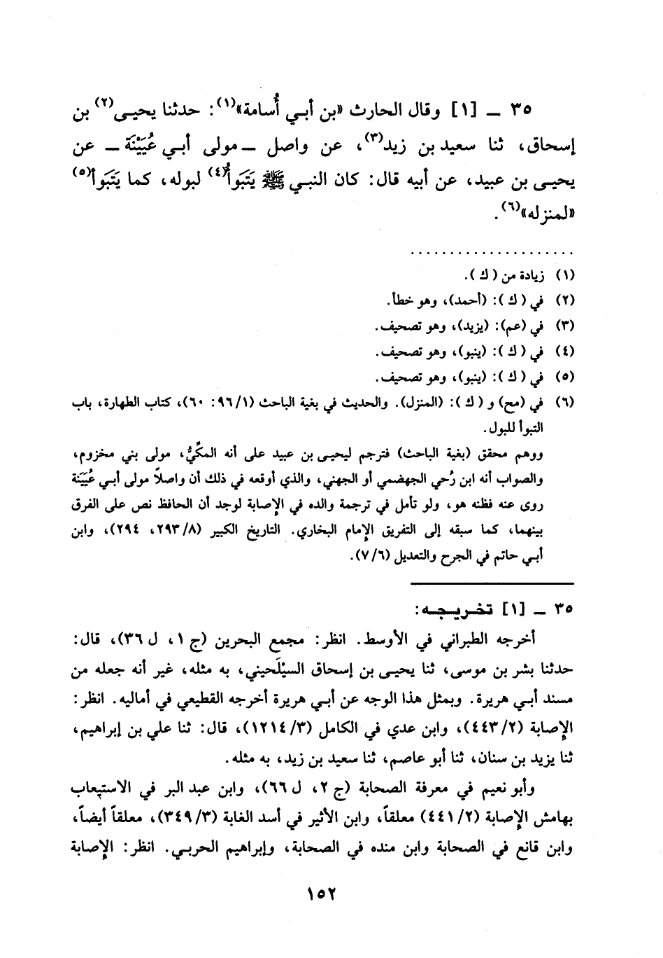 35 -[1] وَقَالَ الْحَارِثُ " بْنُ أَبِي أُسَامَةَ ": حَدَّثَنَا يَحْيَى بْنُ إِسْحَاقَ، ثنا سَعِيدُ بْنُ زَيْدٍ، عَنْ وَاصِلٍ - مَوْلَى أَبِي عُيَيْنَةَ - عَنْ يَحْيَى بْنِ عُبَيْدٍ، عَنْ أَبِيهِ قَالَ: كَانَ النَّبِيُّ صَلَّى اللَّهُ عَلَيْهِ وَسَلَّمَ §يَتَبَوَّأُ لِبَوْلِهِ، كَمَا يَتَبَوَّأُ لِمَنْزِلِهِ -[154]-