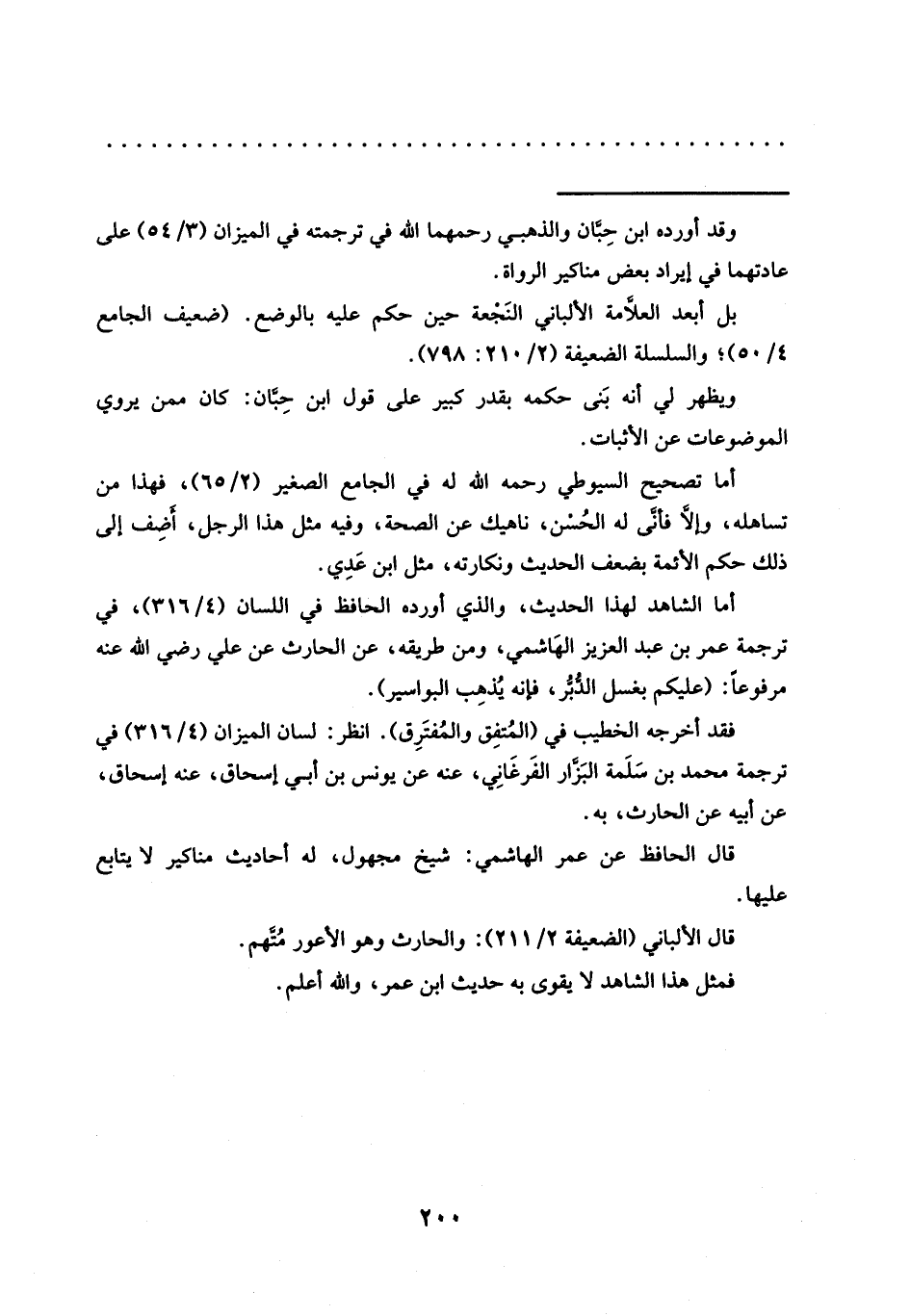 بل أبعد العلاَّمة الألباني النَجْعة حين حكم عليه بالوضع. (ضعيف الجامع 4/ 50)؛ والسلسلة الضعيفة (2/ 210: 798).