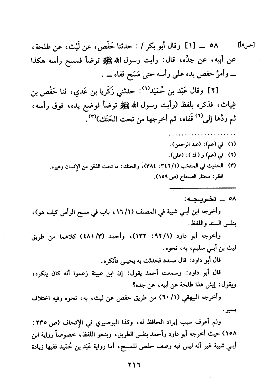 حَدَّثَنِي زَكَرِيَّا بْنُ عَدِيٍّ، ثنا حَفْصُ بْنُ غِيَاثٍ، فَذَكَرَهُ بِلَفْظِ §رَأَيْتُ رَسُولَ اللَّهِ صَلَّى اللَّهُ عَلَيْهِ وَسَلَّمَ تَوَضَّأَ فَوَضَعَ يَدَهُ، فَوْقَ رَأْسِهِ ثُمَّ رَدَّهَا إِلَى قَفَاهُ، ثُمَّ أَخْرَجَهَا مِنْ تَحْتِ الْحَنَكِ)