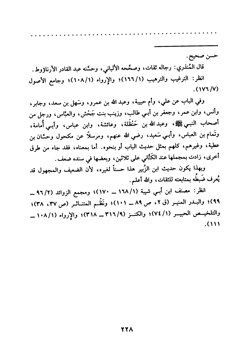 انظر: مصنف ابن أبي شيبة (1/ 168 - 170)؛ ومجمع الزوائد (2/ 96 - 99)؛ والبدر المنير (ق 2، ص 89 - 101)؛ ونَظْم المتناثر (ص 37، 38)؛ والتلحيص الحبير (1/ 74)؛ والكنز (9/ 316 - 318)؛ والإرواء (1/ 108 - 111).
