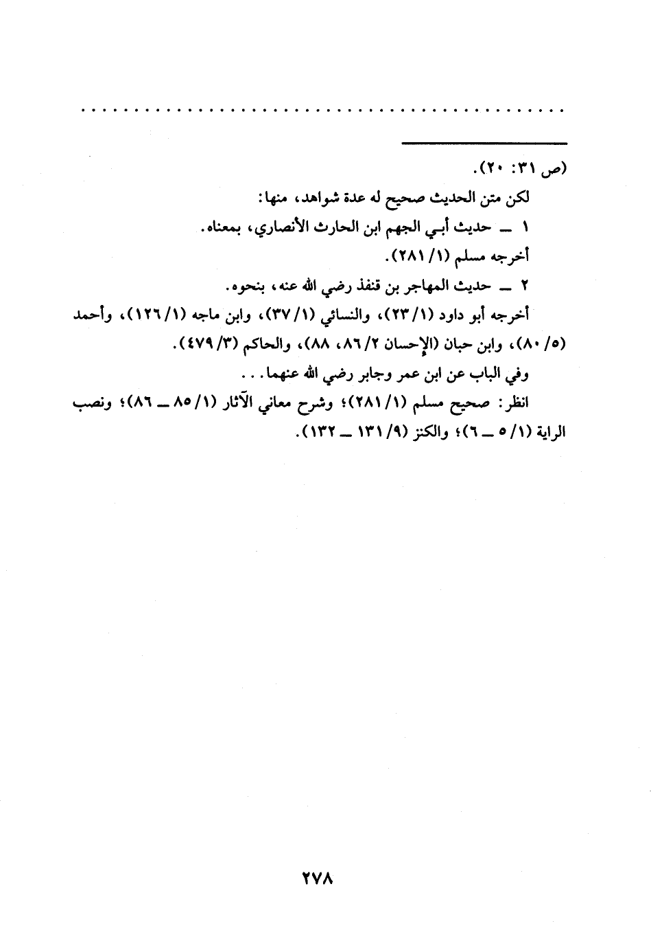 انظر: صحيح مسلم (1/ 281)؛ وشرح معاني الآثار (1/ 85 - 86)؛ ونصب (1/ 5 - 6)؛ والكنز (9/ 131 - 132).