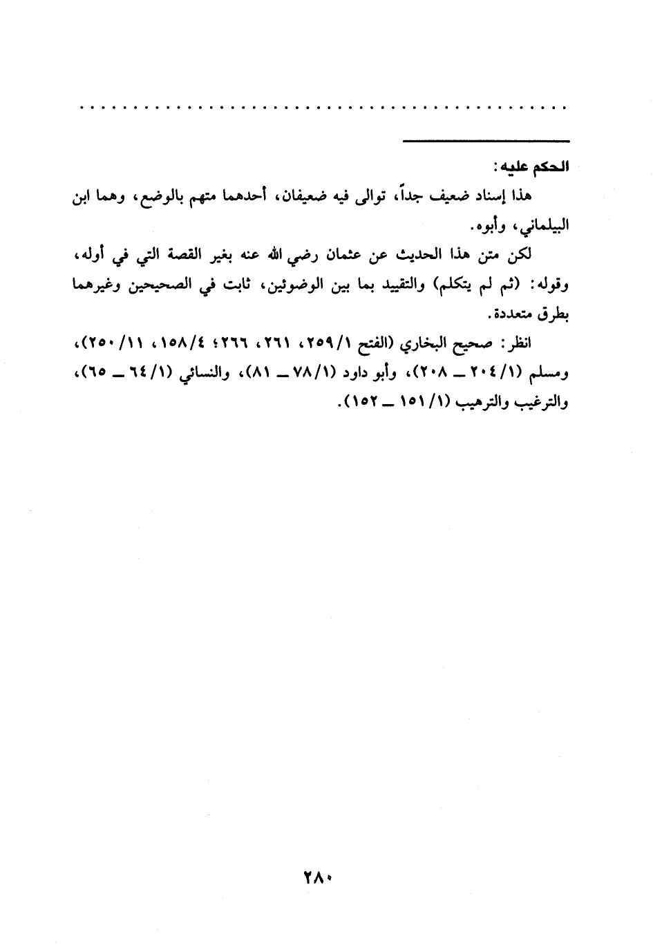 انظر: صحيح البخاري (الفتح 1/ 259، 261، 266؛ 4/ 158، 11/ 250)، ومسلم (1/ 204 - 208)، وأبو داود (1/ 78 - 81)، والنسائي (1/ 64 - 65)، والترغيب والترهيب (1/ 151 - 152).