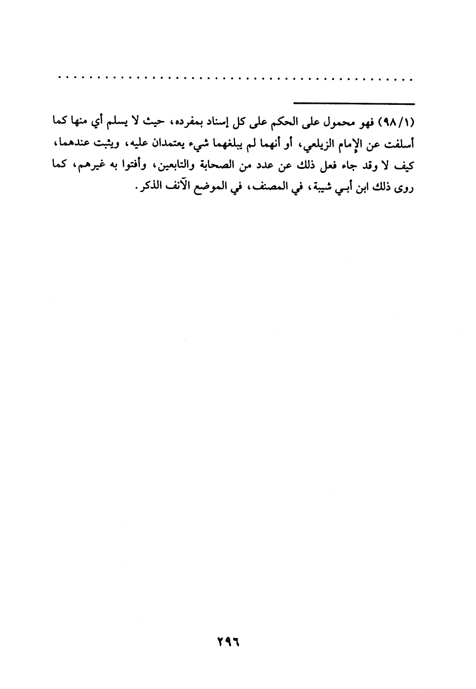 = (1/ 98) فهو محمول على الحكم على كل إسناد بمفرده، حيث لا يسلم أي منها كما أسلفت عن الإمام الزيلعي، أو أنهما لم يبلغهما شيء يعتمدان عليه، ويثبت عندهما، كيف لا وقد جاء فعل ذلك عن عدد من الصحابة والتابعين، وأفتوا به غيرهم، كما روى ذلك ابن أبي شيبة، في المصنف، في الموضع الآنف الذكر.