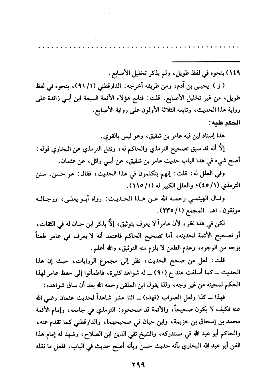 إلَّا أنه قد سبق تصحيح الترمذي والحاكم له، ونقل الترمذي عن البخاري قوله: أصح شيء في هذا الباب حديث عامر بن شقيق، عن أبي وائل، عن عثمان.