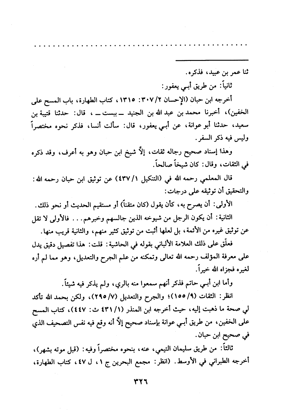 انظر: الثقات (9/ 155)؛ والجرح والتعديل (7/ 295)، ولكن بحمد الله تأكد لي صحة ما ذهبت إليه، حيث أخرجه ابن المنذر (1/ 431 ث: 447)، كتاب المسح على الخفين، من طريق أبي عوانة بإسناد صحيح إلَّا أنه وقع فيه نفس التصحيف الذي في صحيح ابن حبان.
