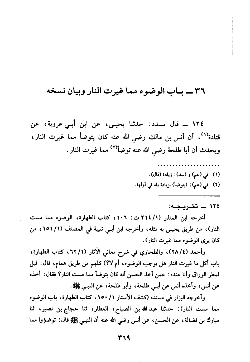 (36 - بَابُ الْوُضُوءِ مِمَّا غَيَّرَتِ النَّارُ وَبَيَانُ نَسْخِهِ)