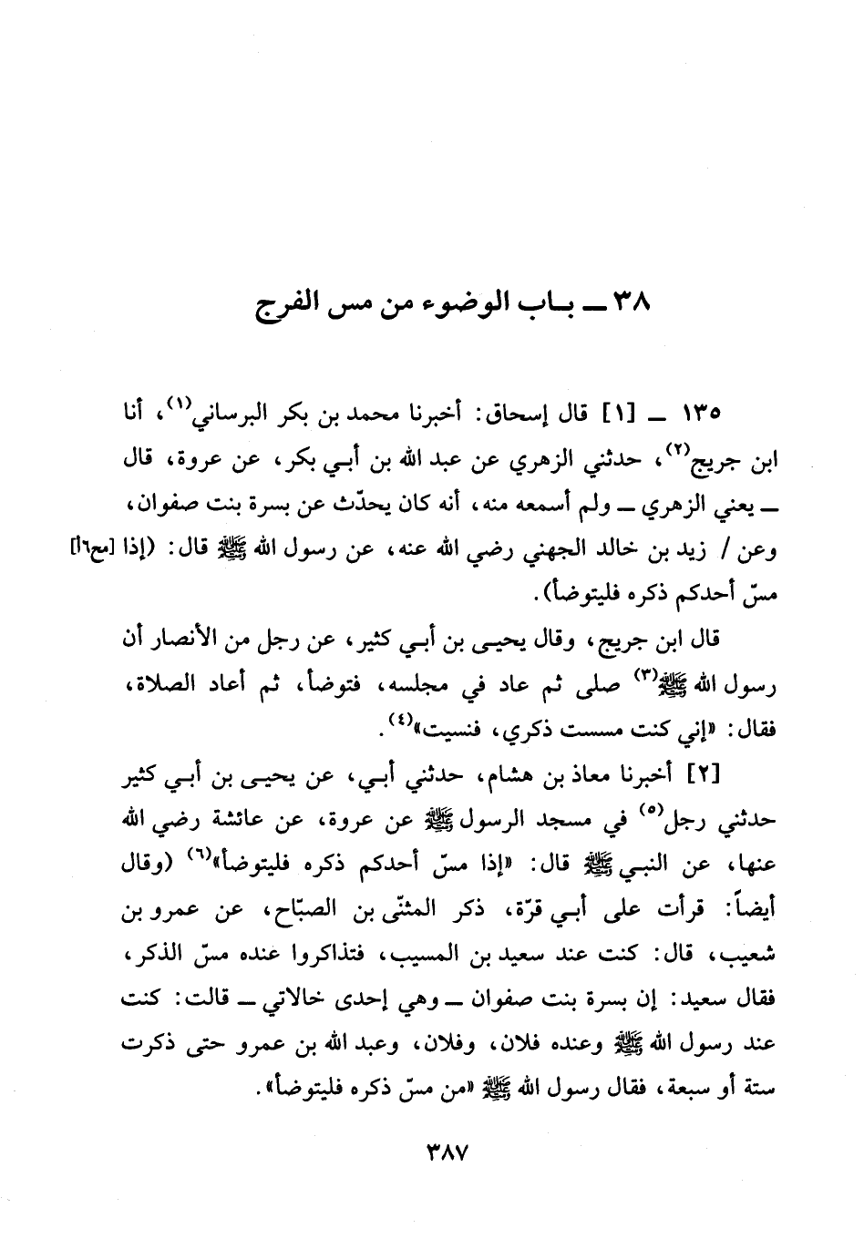 (38 - بَابُ الْوُضُوءِ مِنْ مَسِّ الْفَرْجِ)