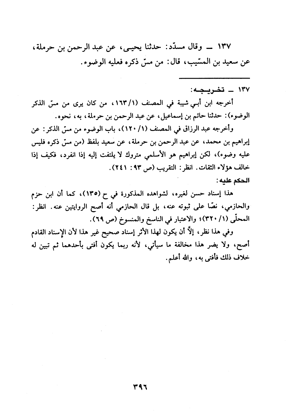 138 - وَقَالَ مُسَدَّدٌ: حَدَّثَنَا يَحْيَى، عَنْ سَعِيدٍ، عَنْ قَتَادَةَ قَالَ: سَأَلْتُ سَعِيدًا يَعْنِي ابْنَ الْمُسَيَّبِ، §عَنْ مَسِّ الذَّكَرِ، فَقَالَ: " هُوَ كَبَعْضِ جَسَدِكَ "